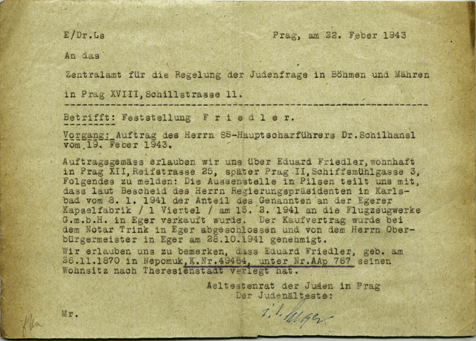 For publication purposes, contact the National Archives in Prague, where the original document is located. The document was digitized by the Terezín Initiative Institute, the Terezín Album project.