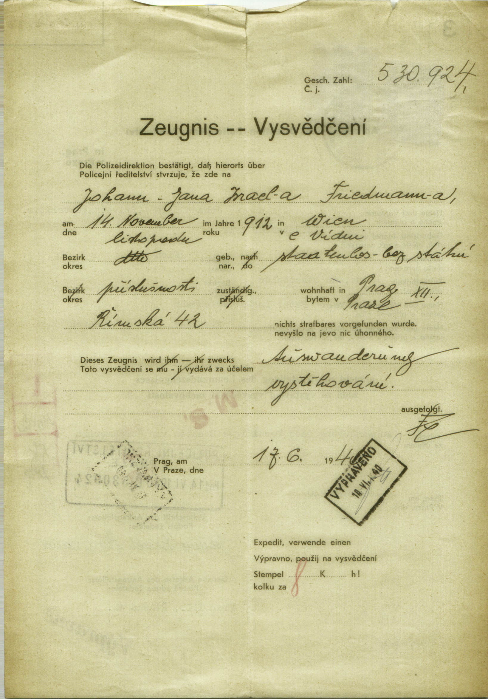 National archives Prague > Police Directorate Prague > 1941-1950 > F > Friedmann Jan