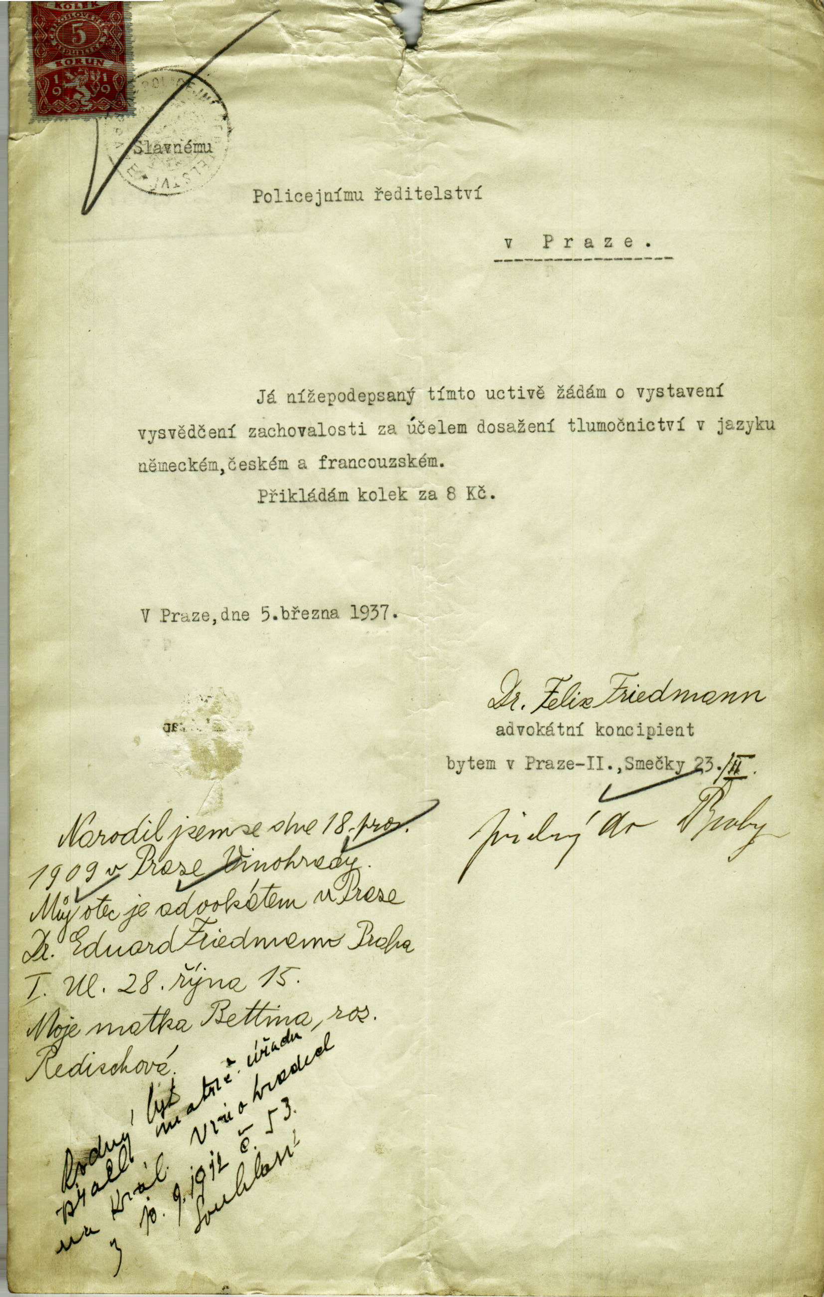 National archives Prague > Police Directorate Prague > 1941-1950 > F > Friedmann Felix
