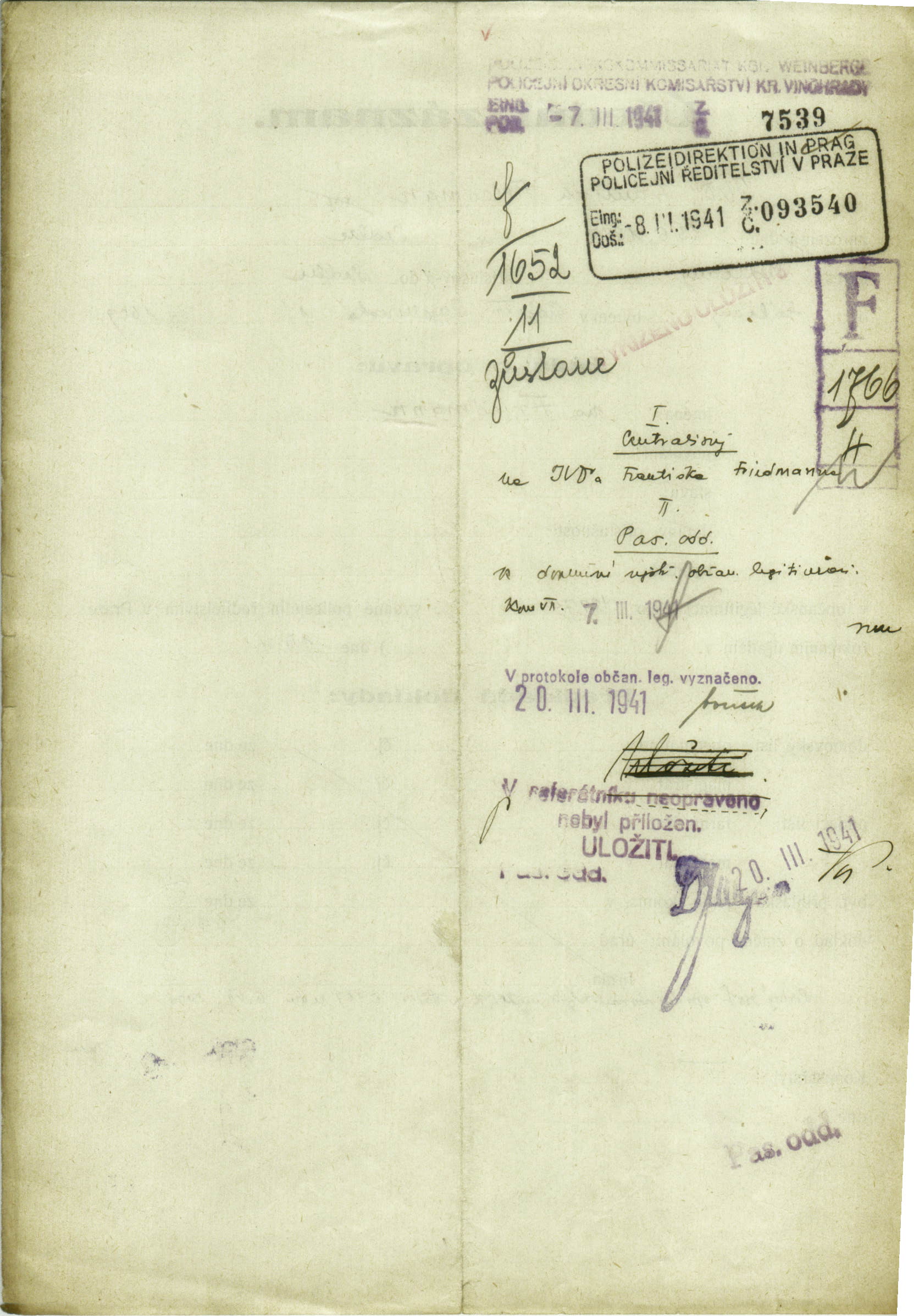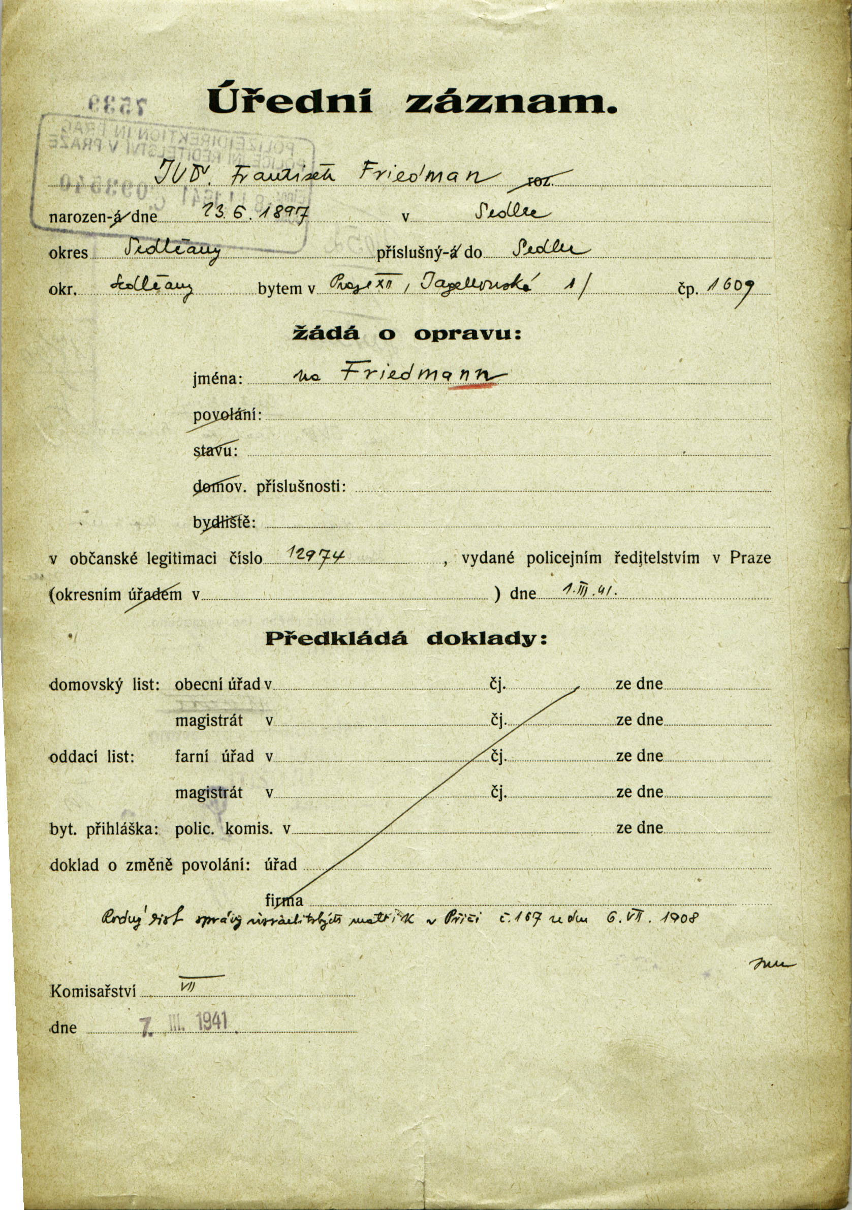 Friedmann Franz: Žádost o opravu v občanské legitimaci