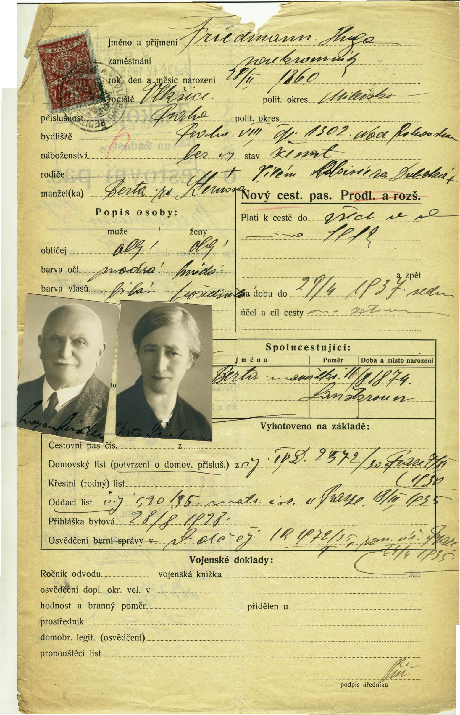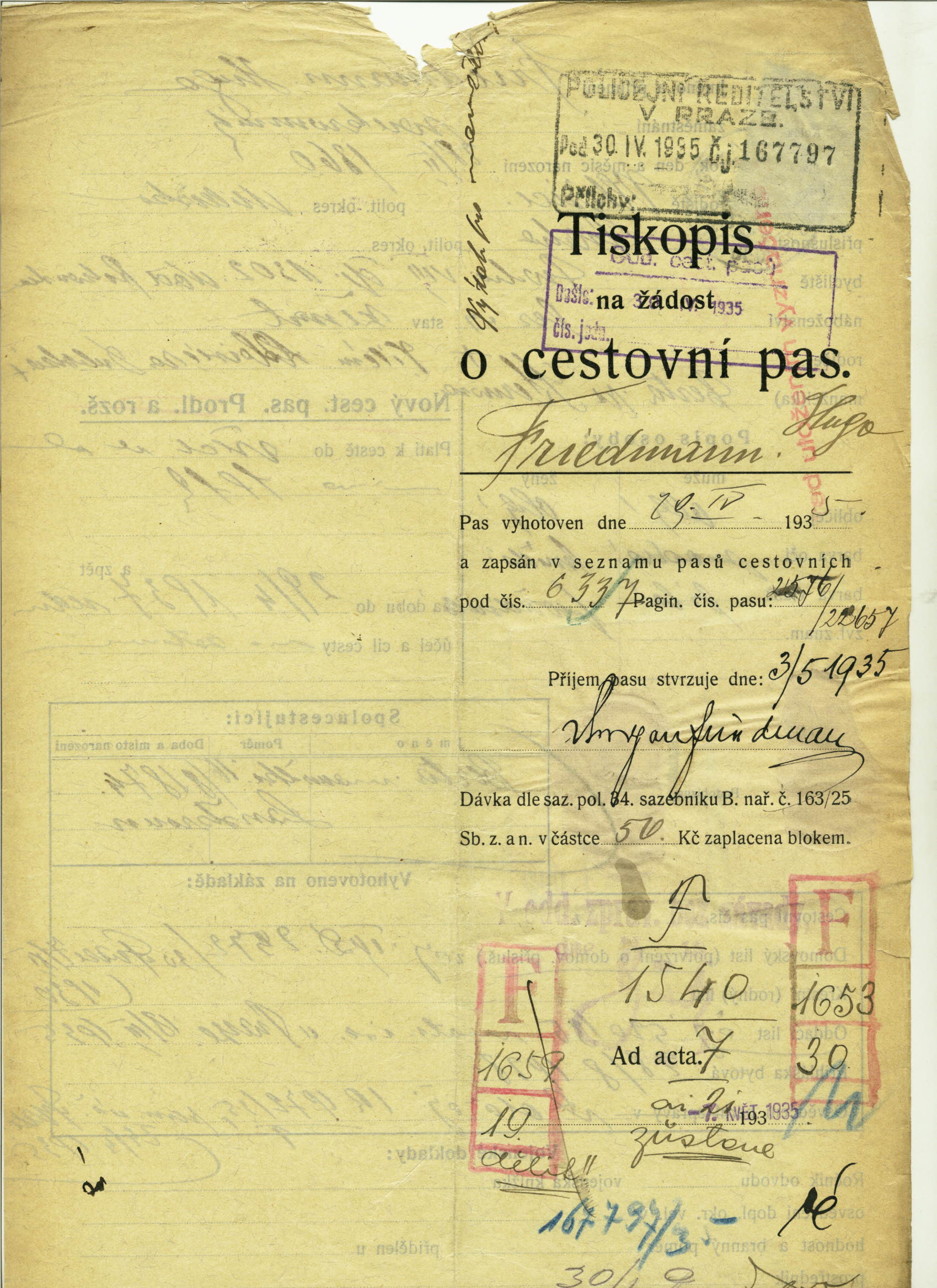 Friedmann Hugo: Passport application