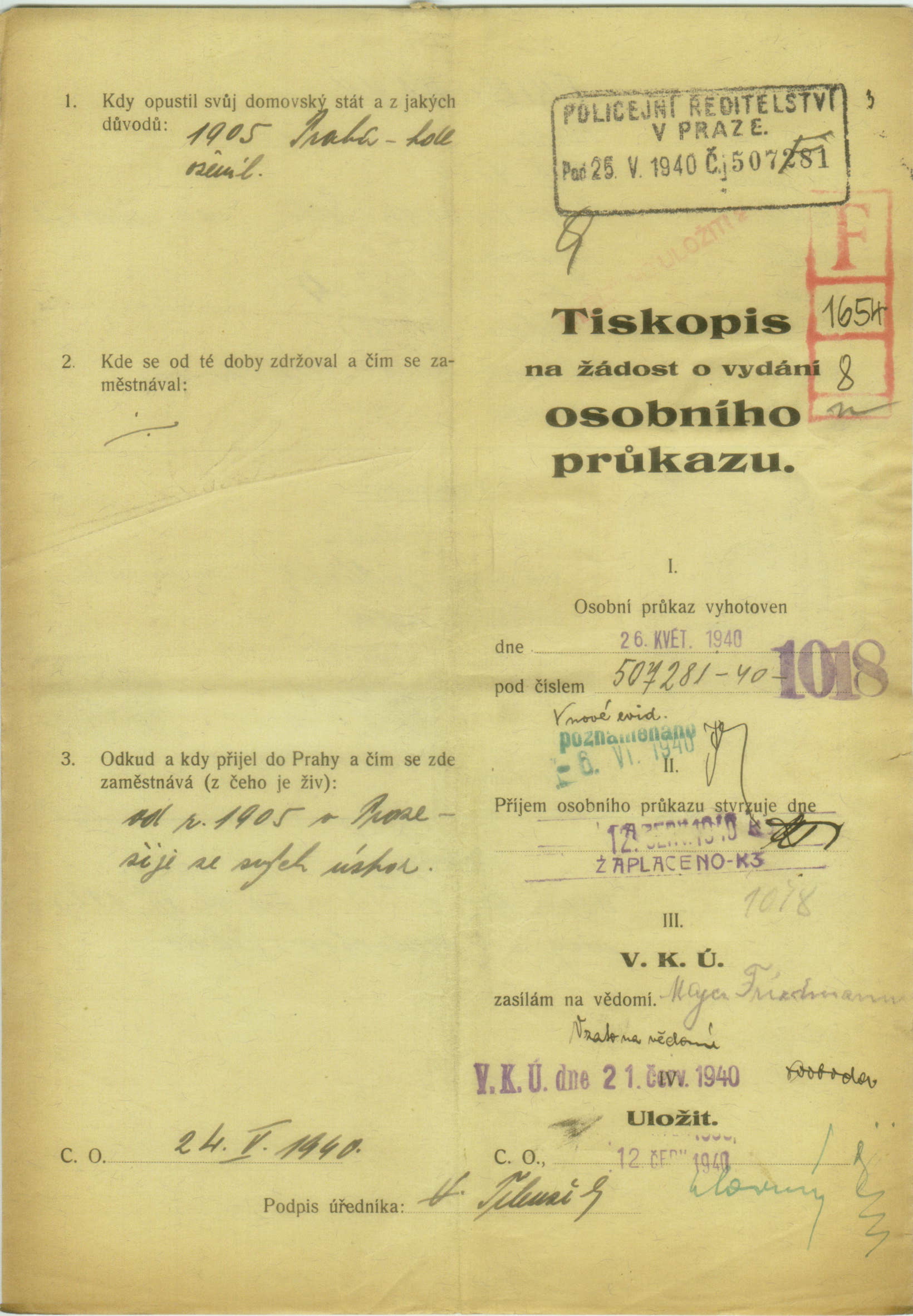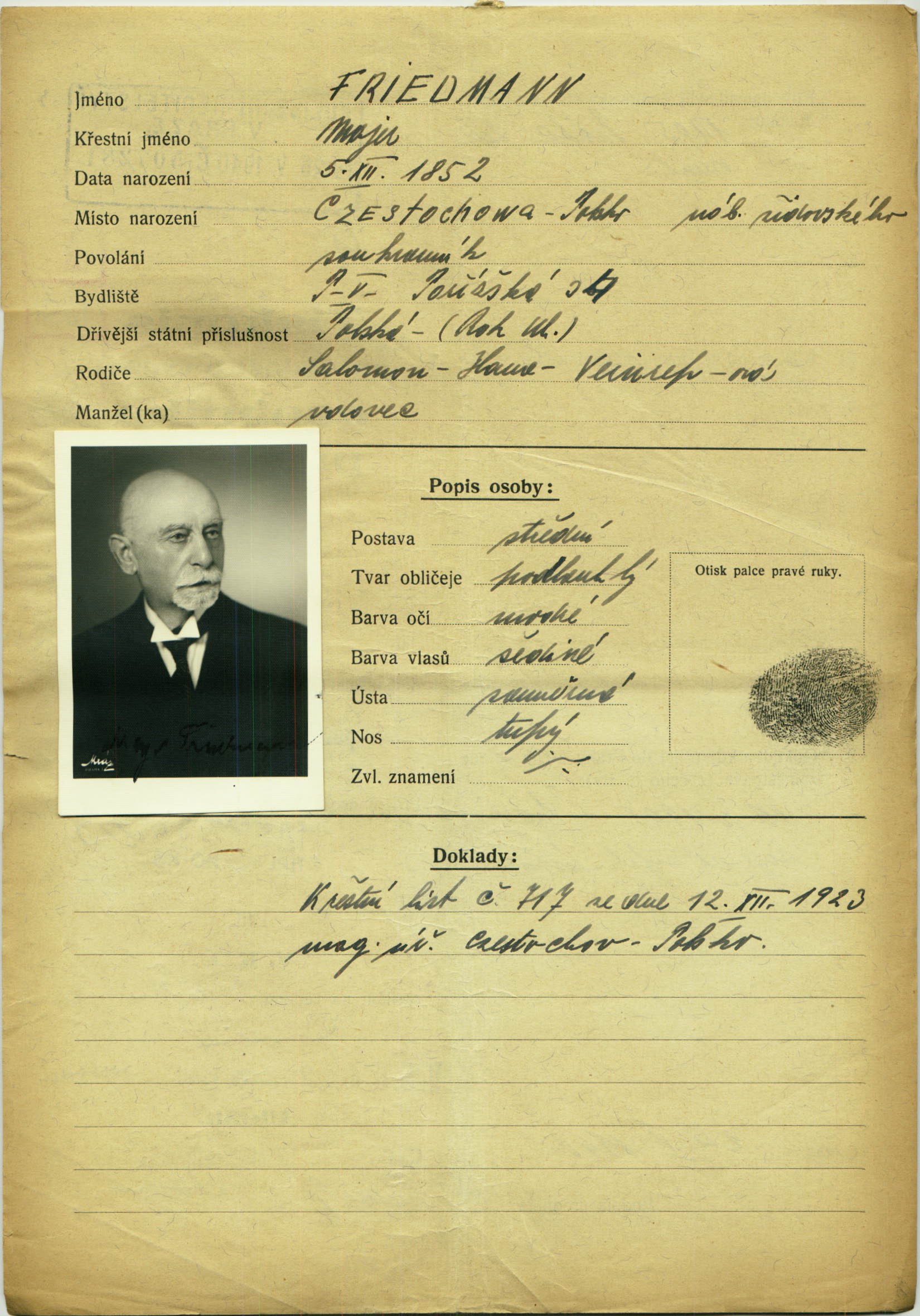 National archives Prague > Police Directorate Prague > 1941-1950 > F > Friedmann Markus