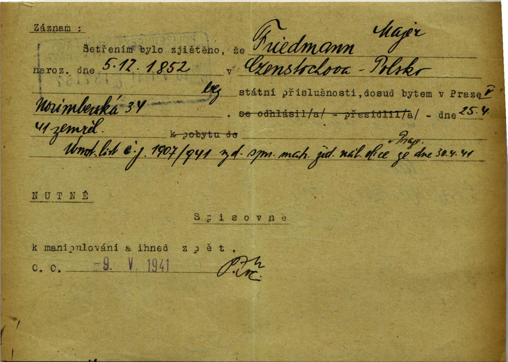 This database contains the names and fates of those who were deported from the territory of today’s Czech Republic, be it their homeland or may they have been deported to the Theresienstadt ghetto before from different european countries. Further, it contains basic information on those men, women and children, most of whom were Roma or Sinti, who died as prisoners of the so-called „Gypsy camp I“ Lety u Písku.