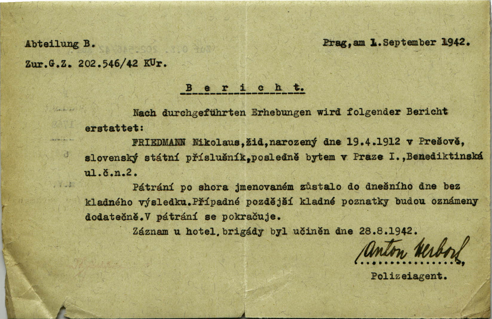 Friedmann Mikuláš: Zpráva o výsledku pátrání