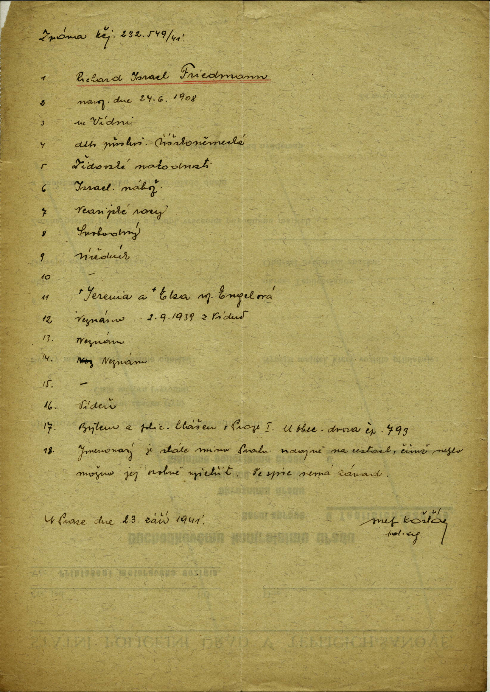 National archives Prague > Police Directorate Prague > 1941-1950 > F > Friedmann Richard