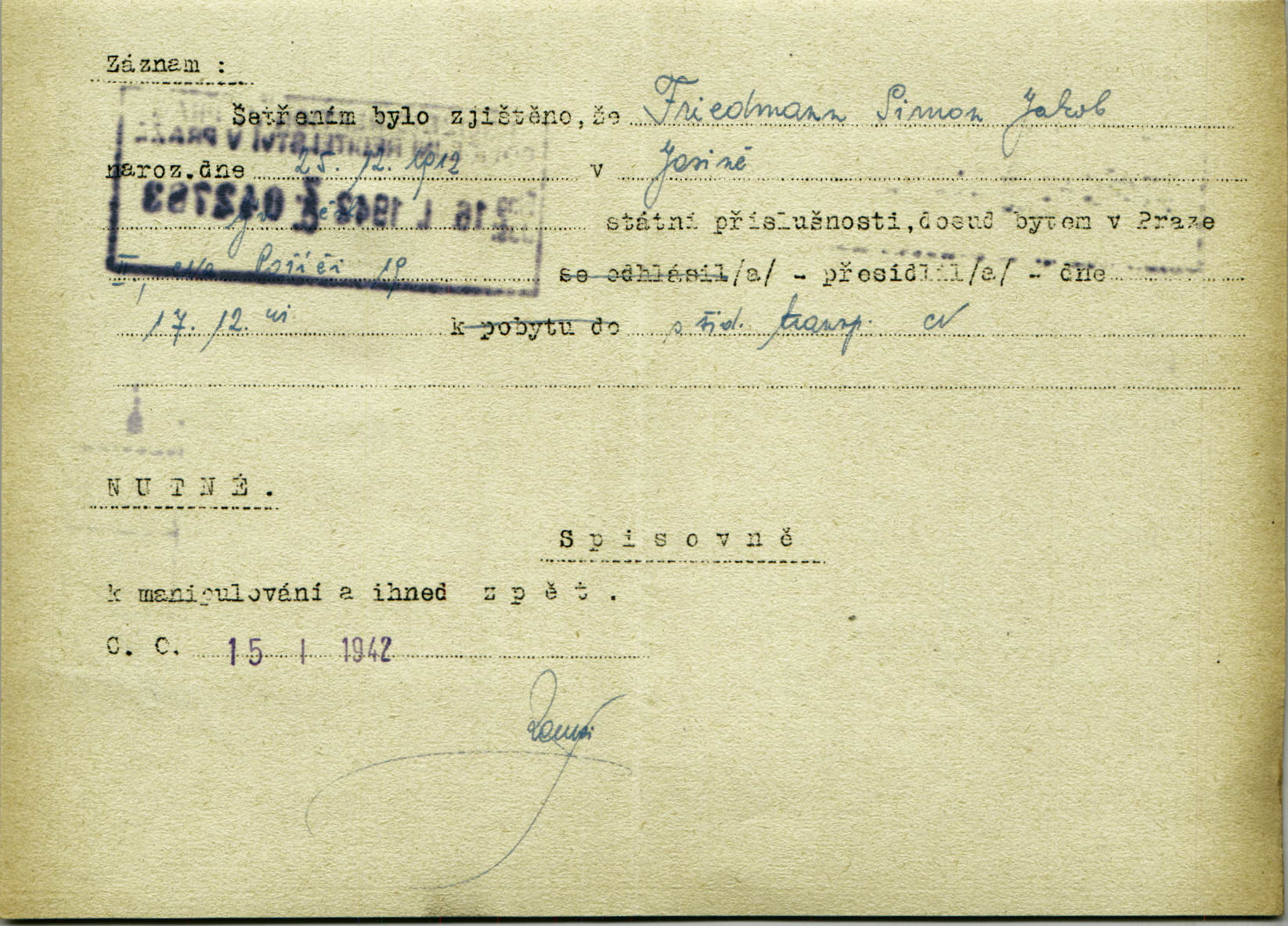 National archives Prague > Police Directorate Prague > 1941-1950 > F > Friedmann Šimon