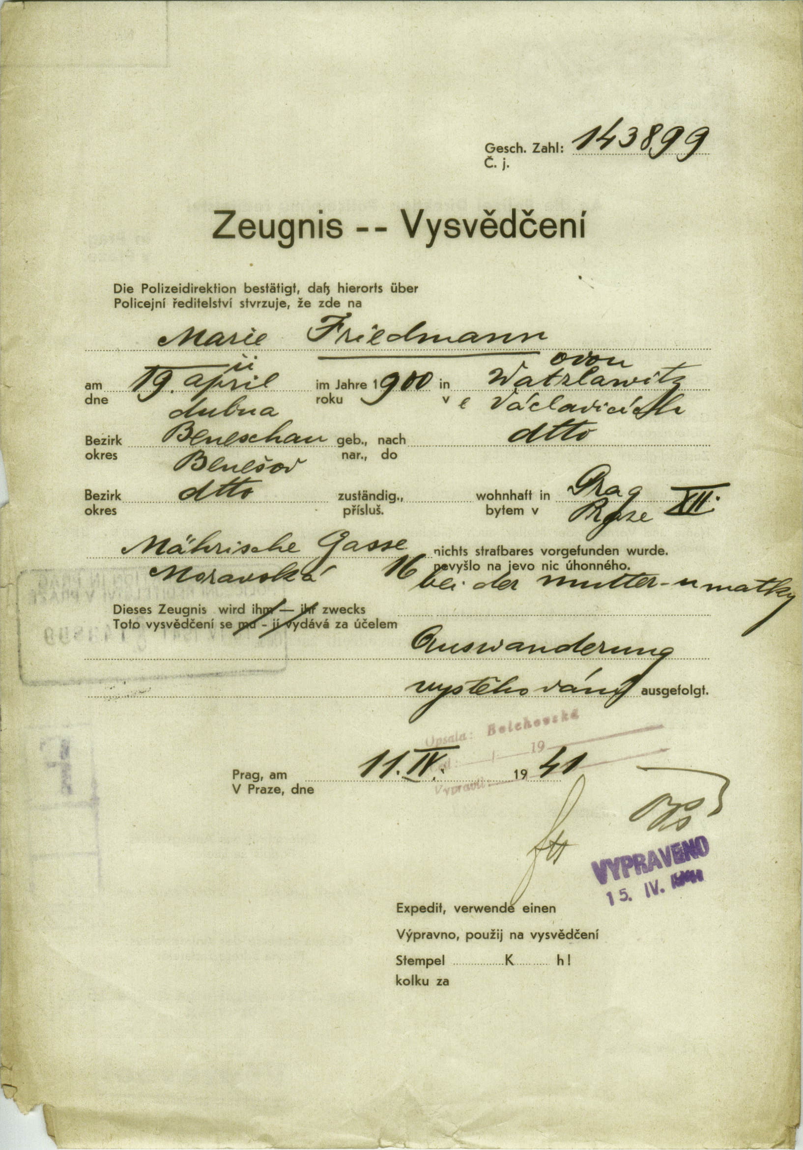 Friedmannová Marie: Probity certificate