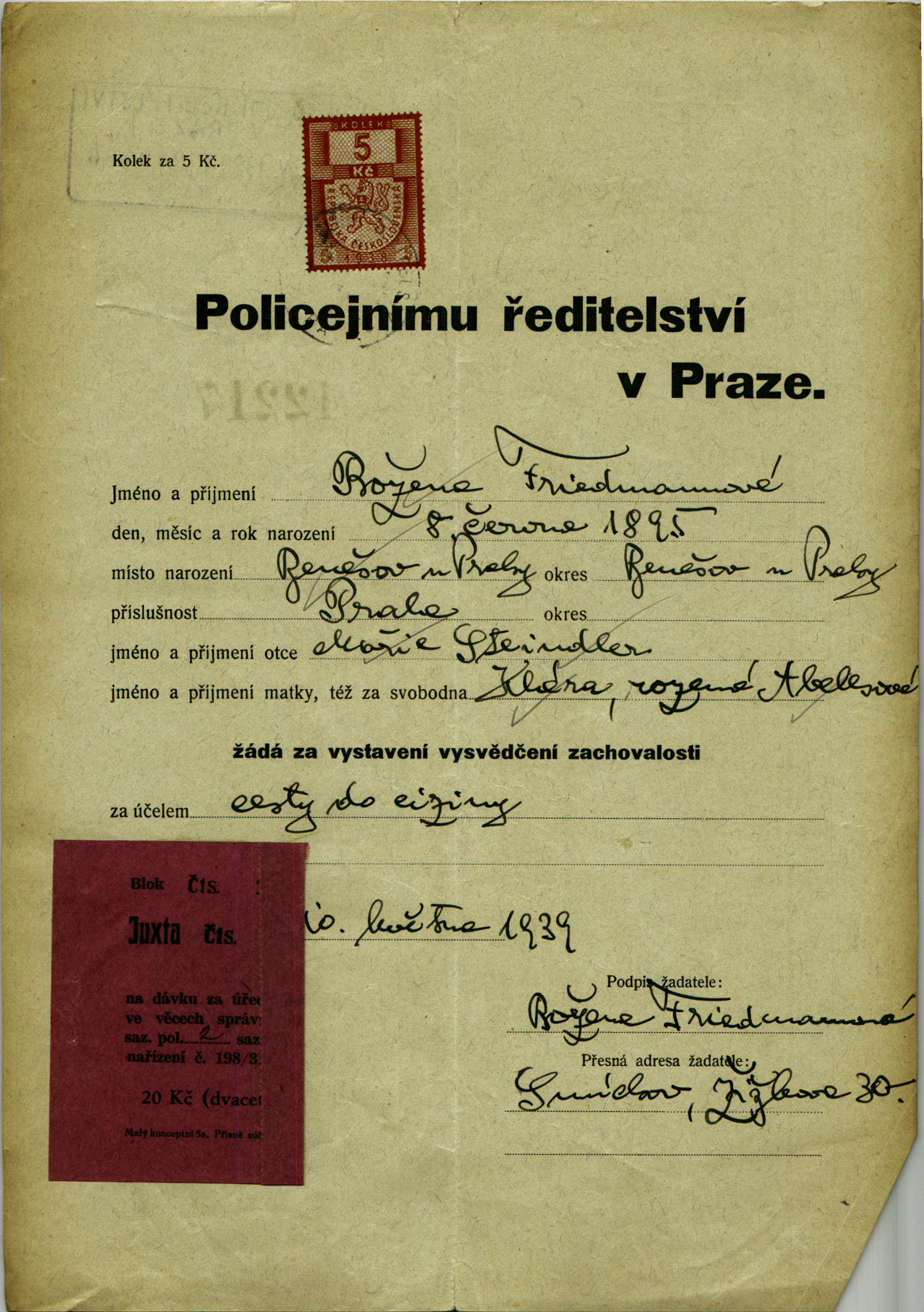 National archives Prague > Police Directorate Prague > 1941-1950 > F > Friedmannová Beatrix