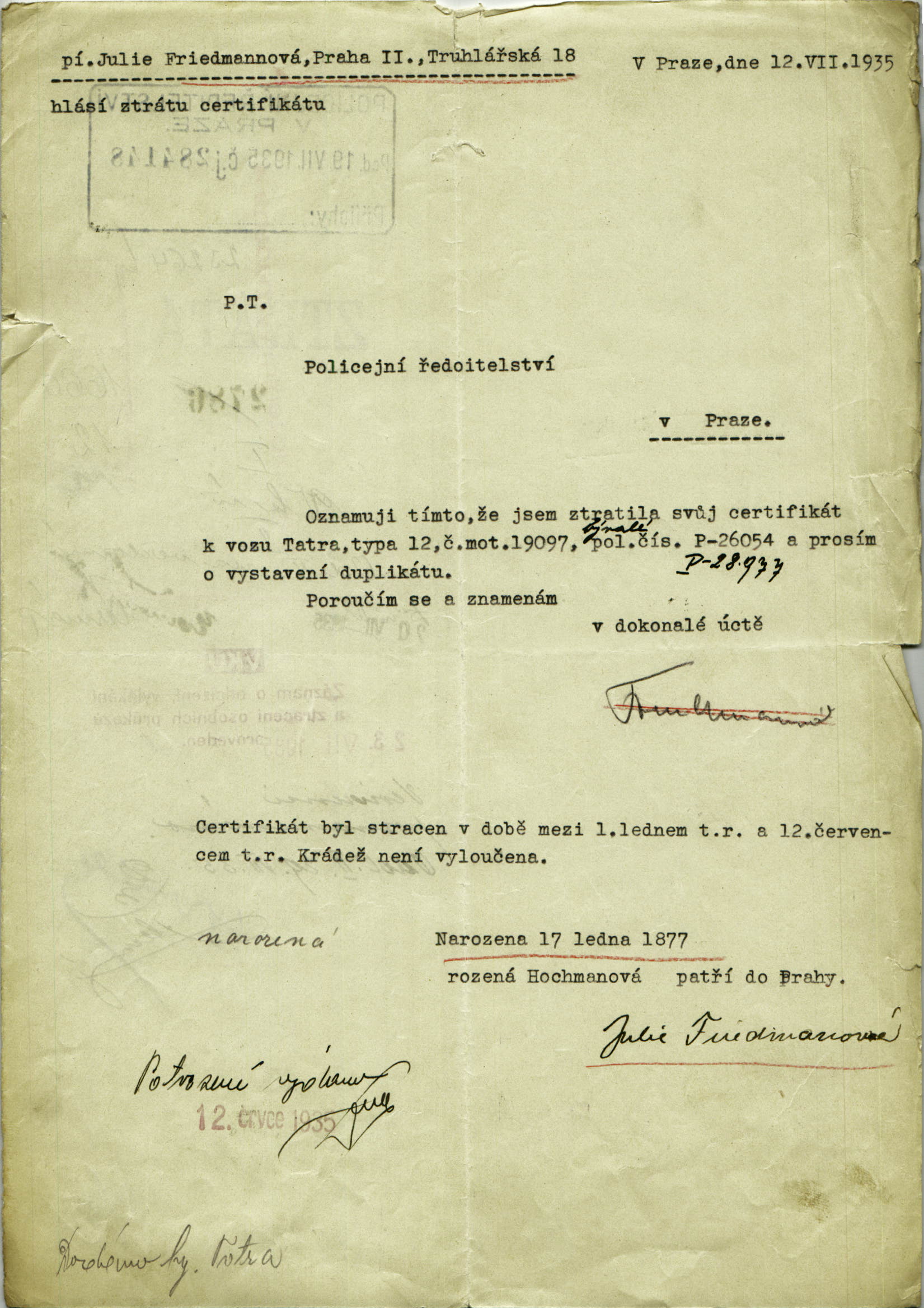 Friedmannová Julie: Ztráta certifikátu k osobnímu vozu