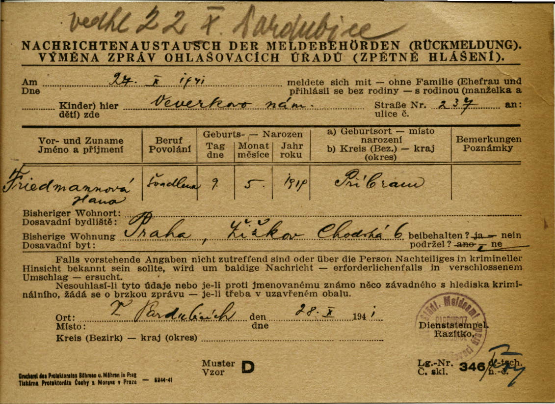 National archives Prague > Police Directorate Prague > 1941-1950 > F > Friedmannová Hana