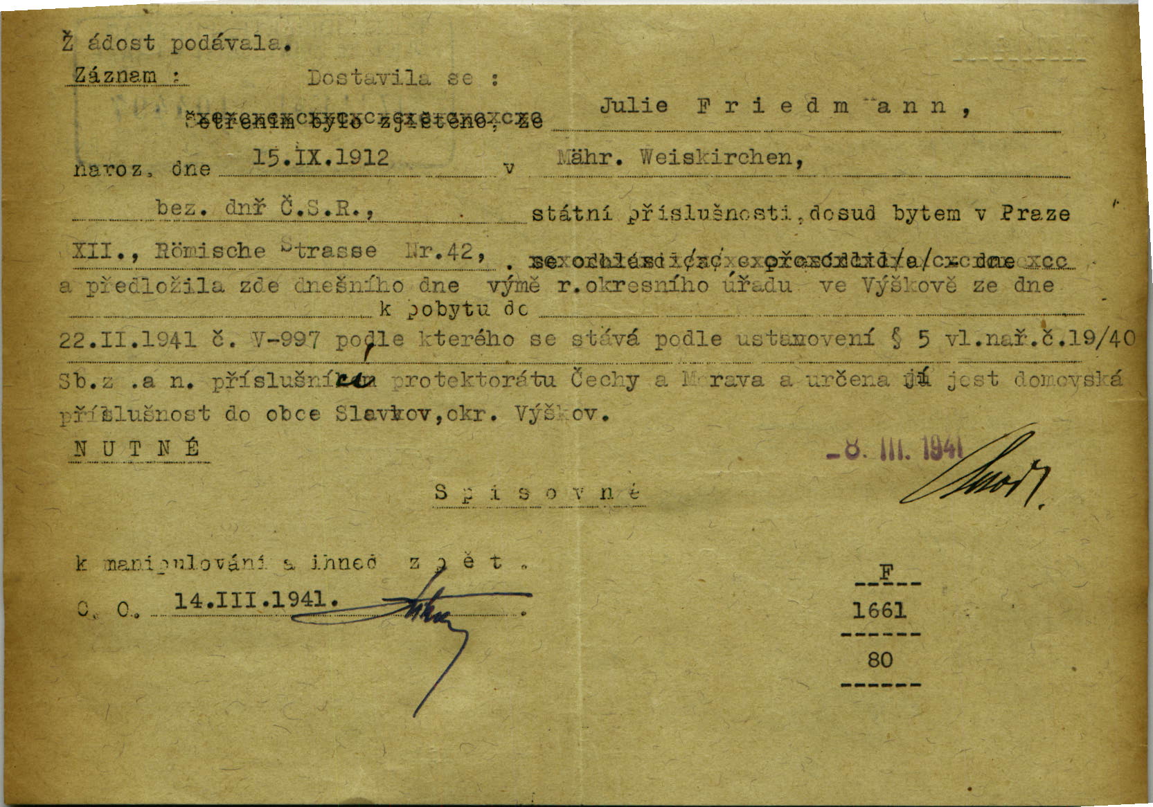National archives Prague > Police Directorate Prague > 1941-1950 > F > Friedmannová Julie