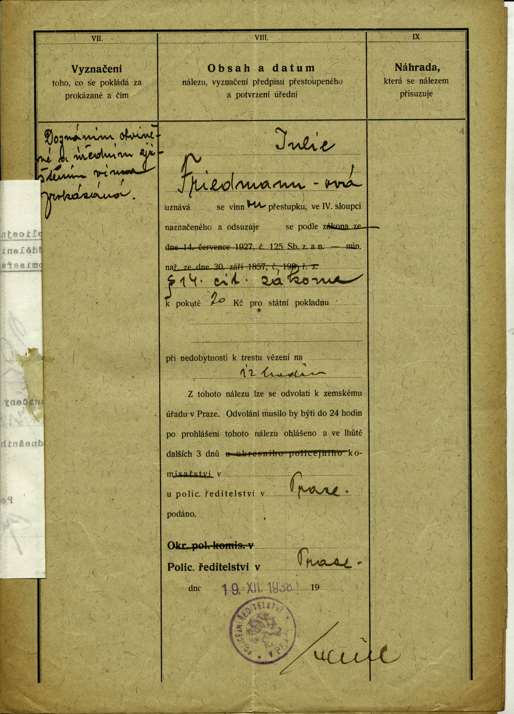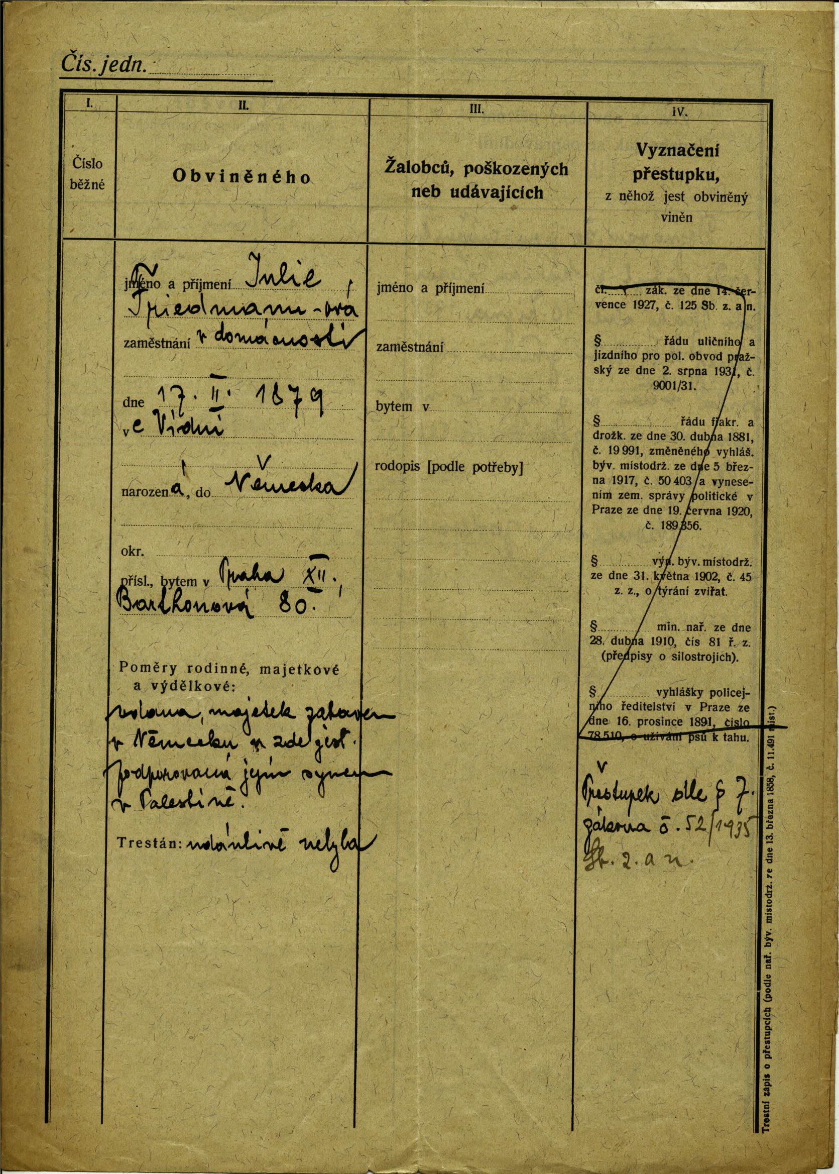National archives Prague > Police Directorate Prague > 1941-1950 > F > Friedmannová Julie