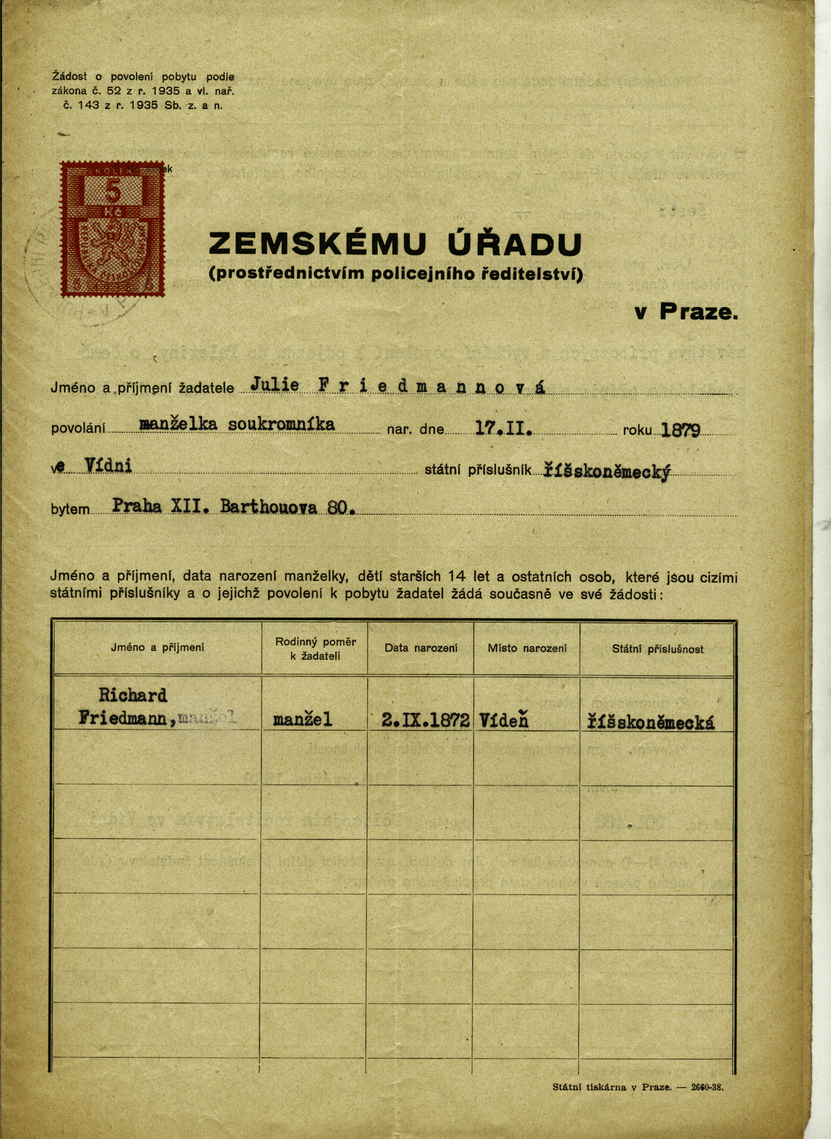 National archives Prague > Police Directorate Prague > 1941-1950 > F > Friedmannová Julie