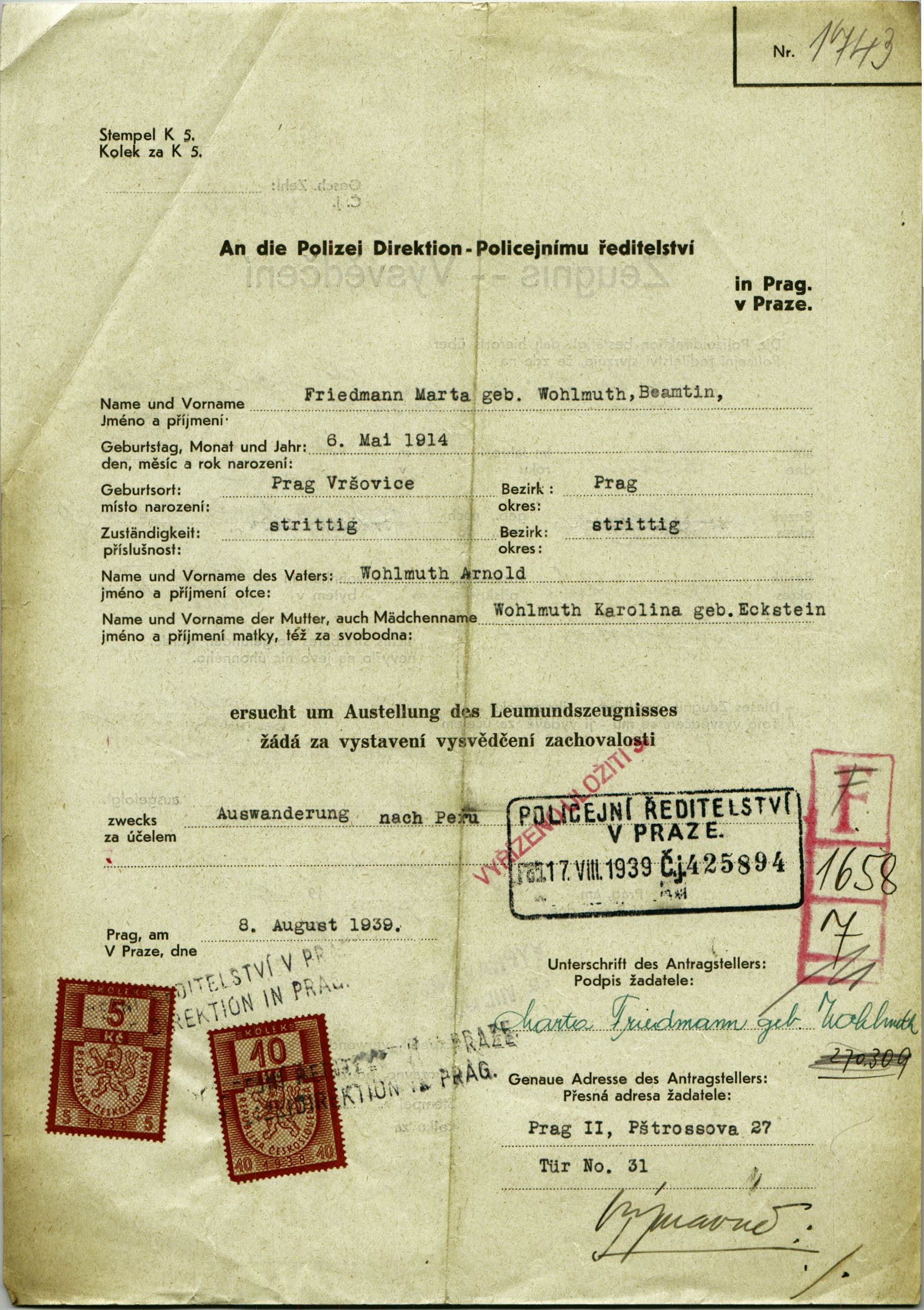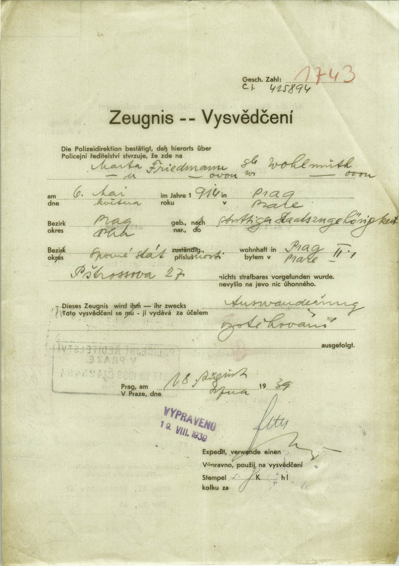 Friedmannová Marta: Probity certificate