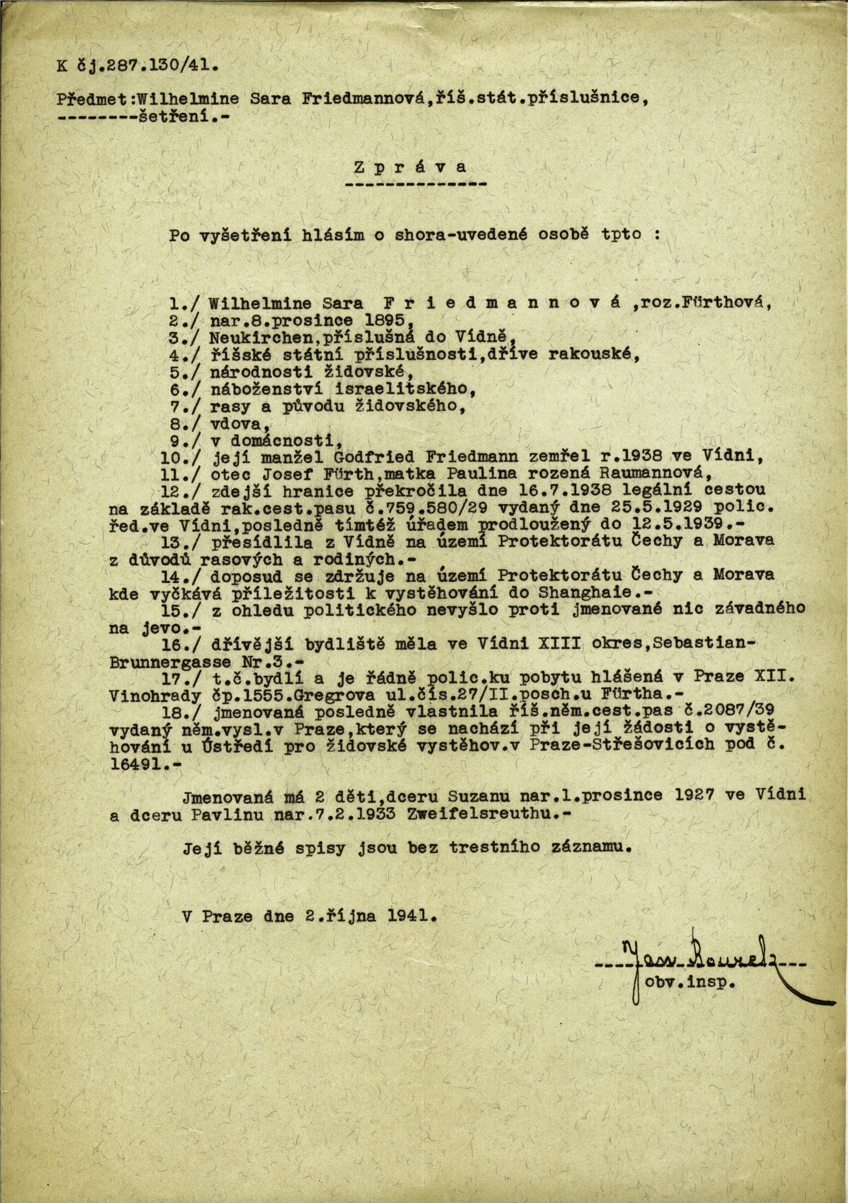 National archives Prague > Police Directorate Prague > 1941-1950 > F > Friedmannová Vilma