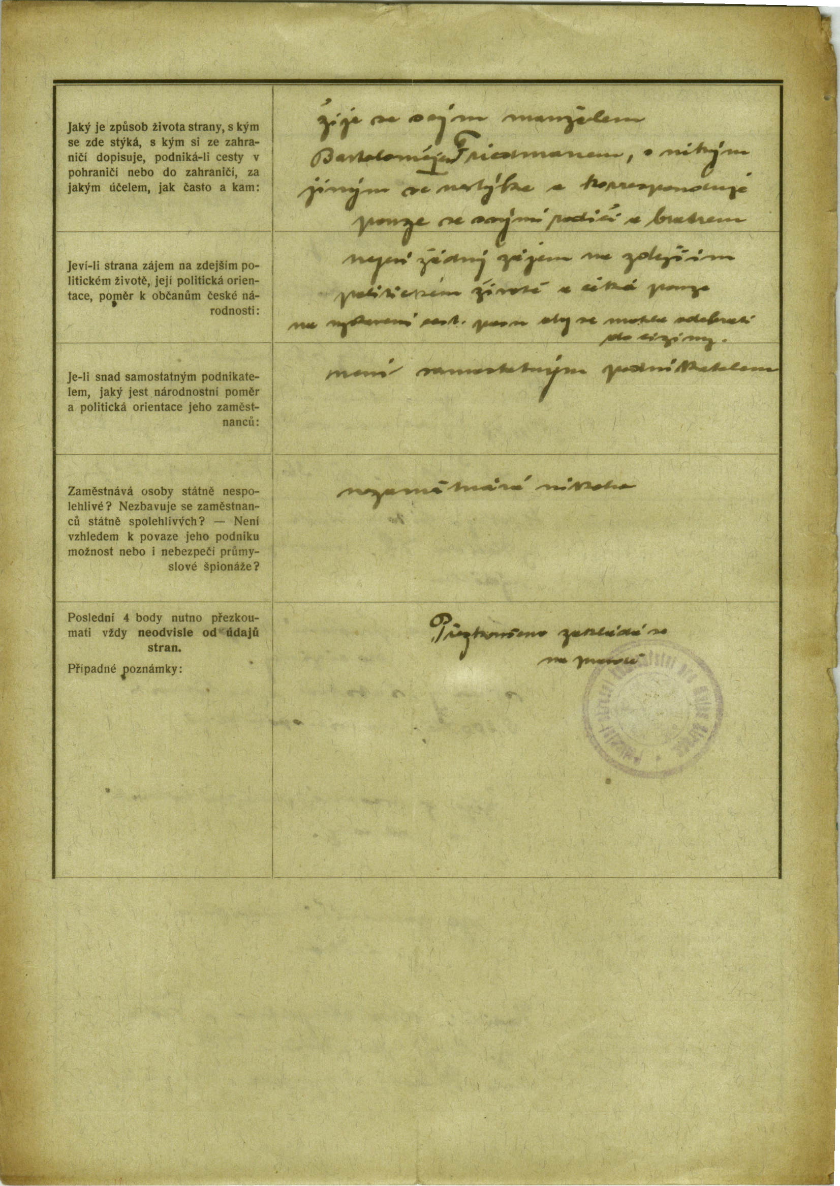 National archives Prague > Police Directorate Prague > 1941-1950 > F > Friedmannová Lota