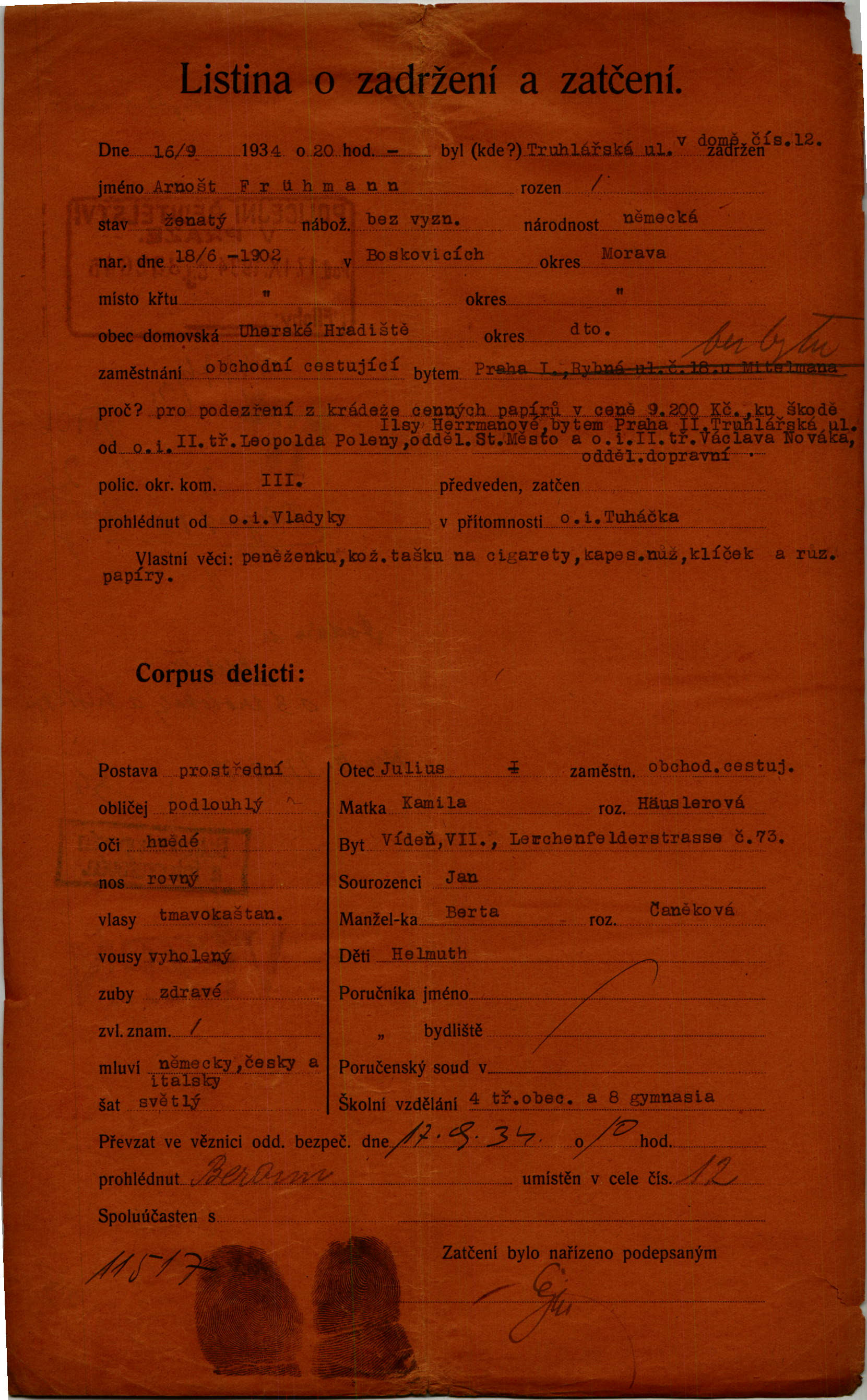 National archives Prague > Police Directorate Prague > 1941-1950 > F > Frühmann Arnošt