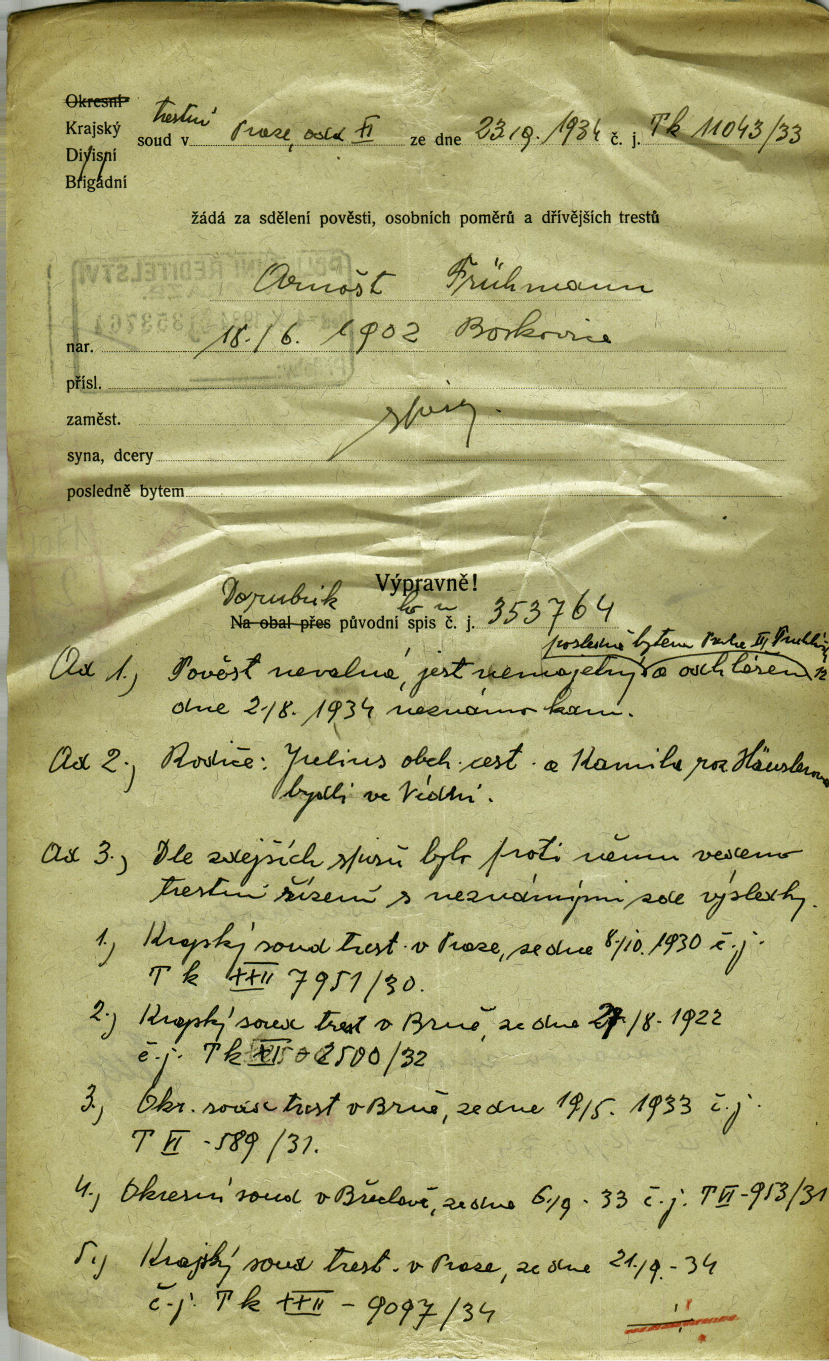 National archives Prague > Police Directorate Prague > 1941-1950 > F > Frühmann Arnošt