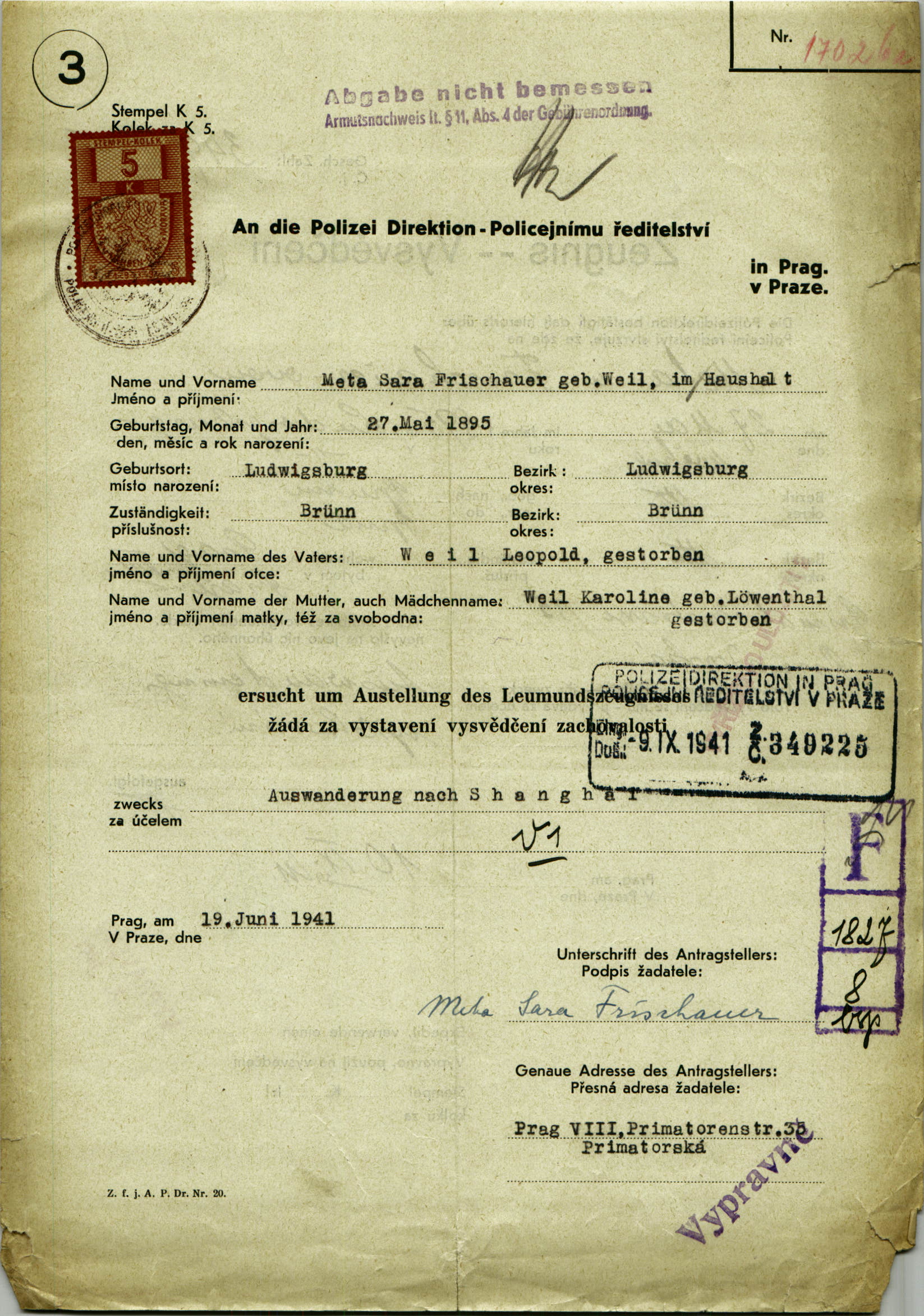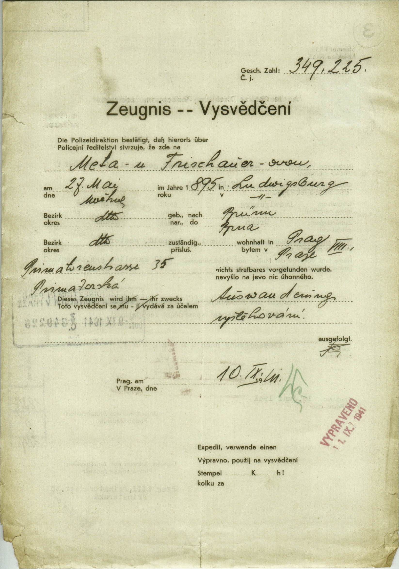 National archives Prague > Police Directorate Prague > 1941-1950 > F > Frischauerová Meta
