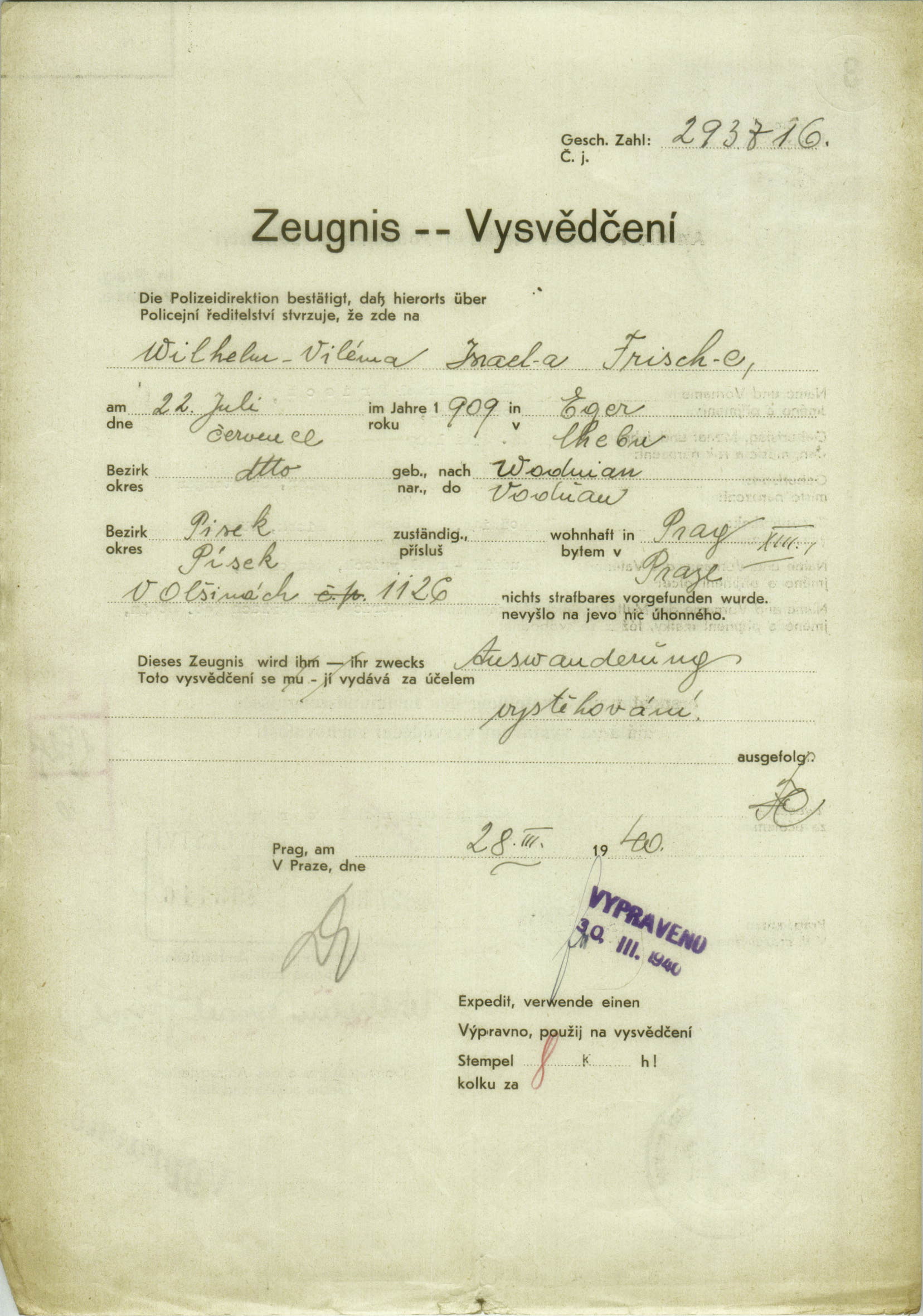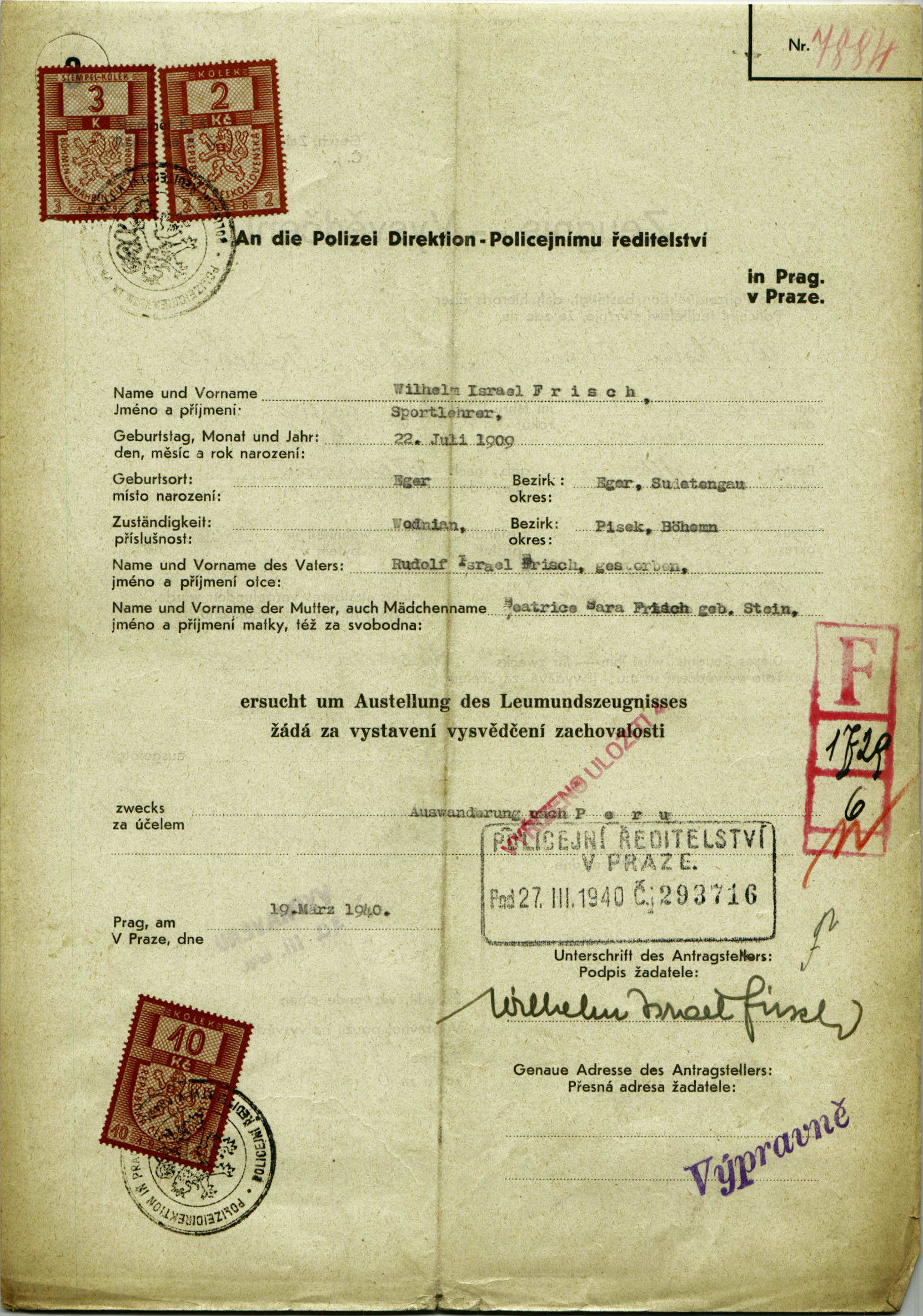 National archives Prague > Police Directorate Prague > 1941-1950 > F > Frisch Vilém