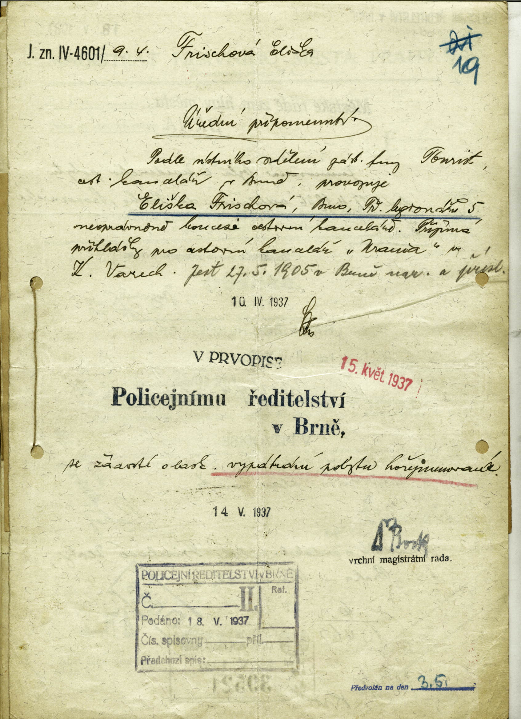 National archives Prague > Police Directorate Prague > 1941-1950 > F > Frischová Eliška