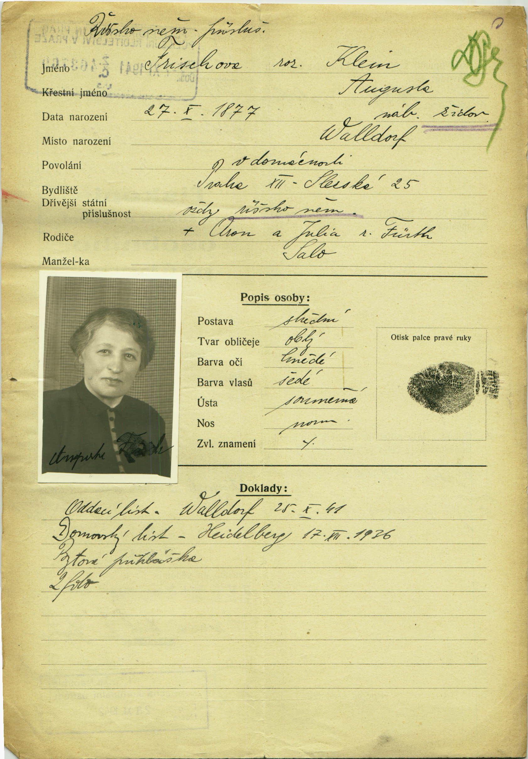 Frischová Augusta: Identity card application
