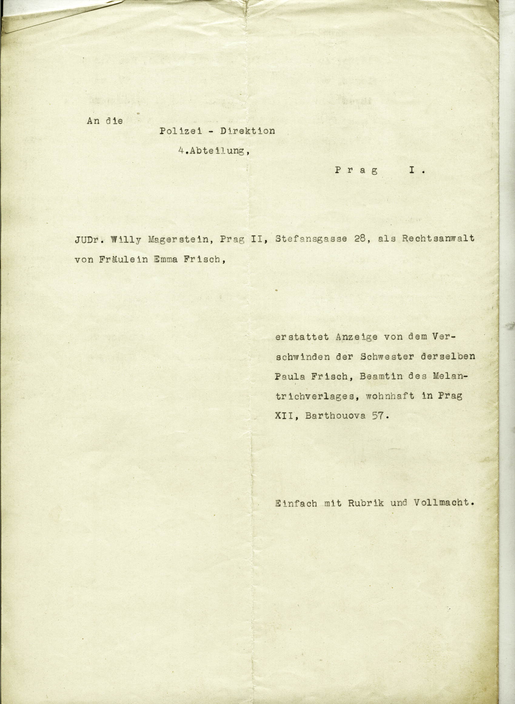 Frischová Pavla: Zpráva o pohřešovaném