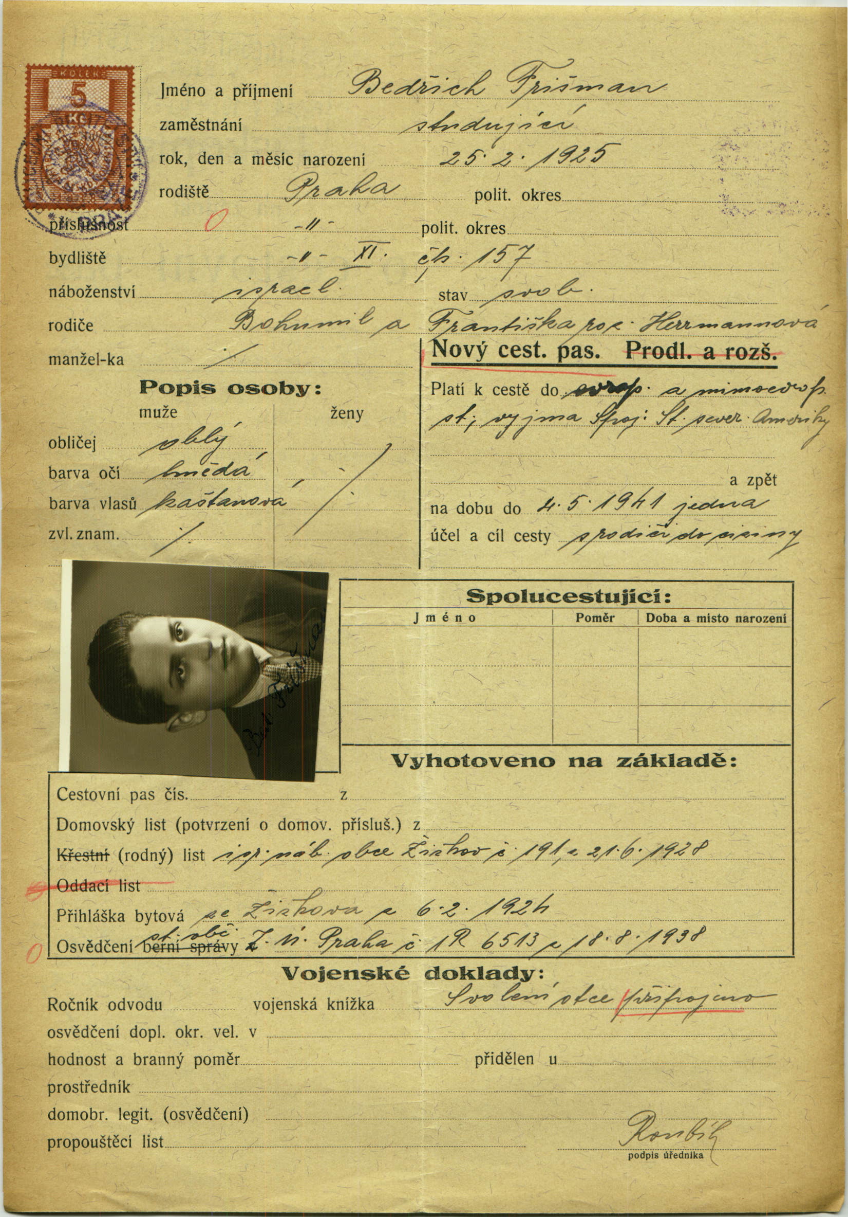 Frišman Bedřich: Passport application
