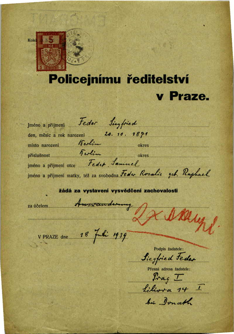 National archives Prague > Police Directorate Prague > 1941-1950 > F > Feder Siegfried