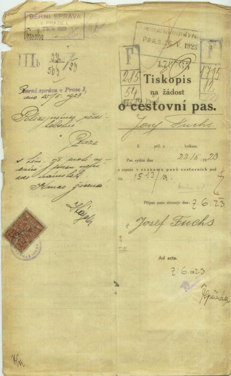 Fuchs Josef: Passport application