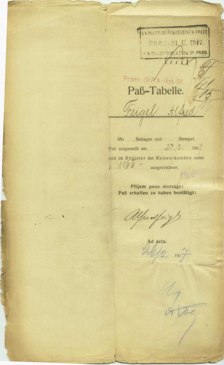 Feigl Alfred: Passport application
