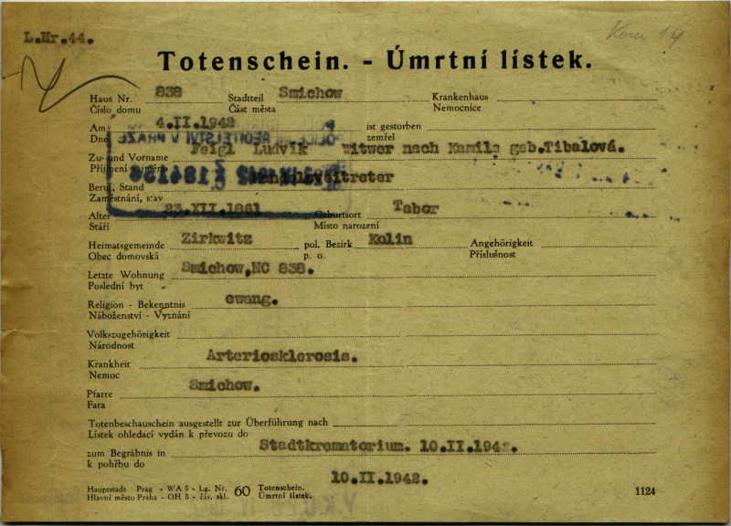 Feigl Ludwig: Úmrtní lístek