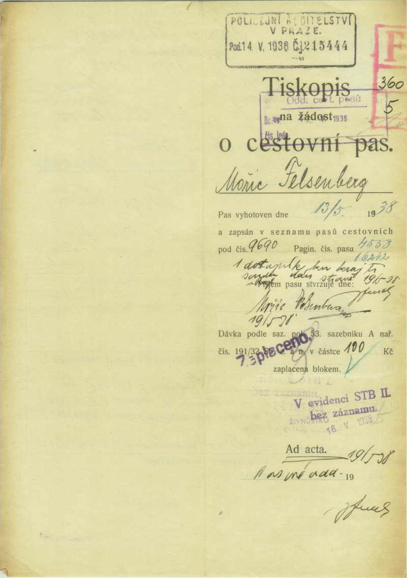 National archives Prague > Police Directorate Prague > 1941-1950 > F > Felsenberg Mořic
