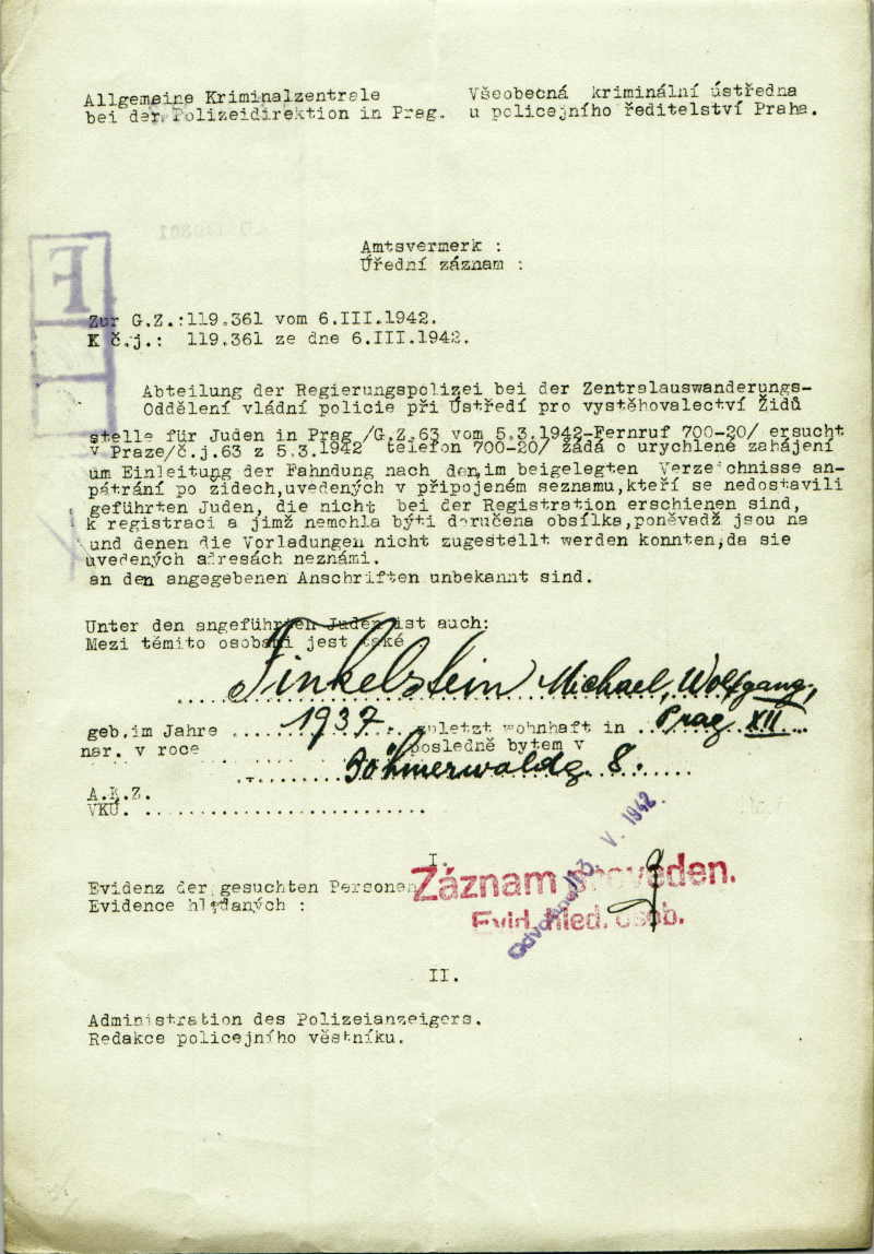 National archives Prague > Police Directorate Prague > 1941-1950 > F > Finkelstein Michael Wolfgang