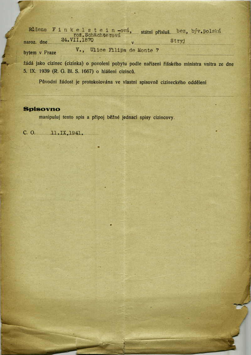 National archives Prague > Police Directorate Prague > 1941-1950 > F > Finkelsteinová Růžena