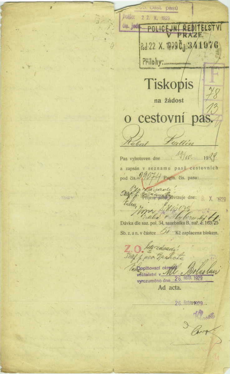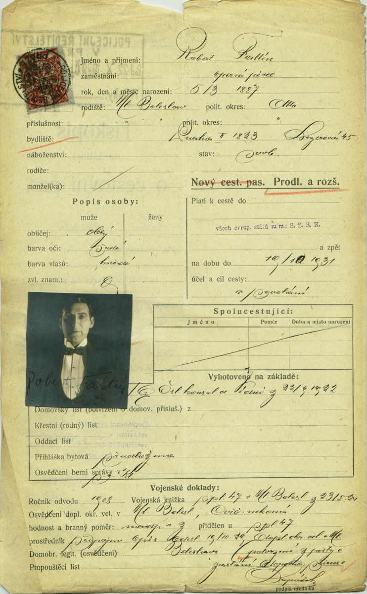 Faltýn Robert Wenzel: Žádost o prodloužení a rozšíření cestovního pasu