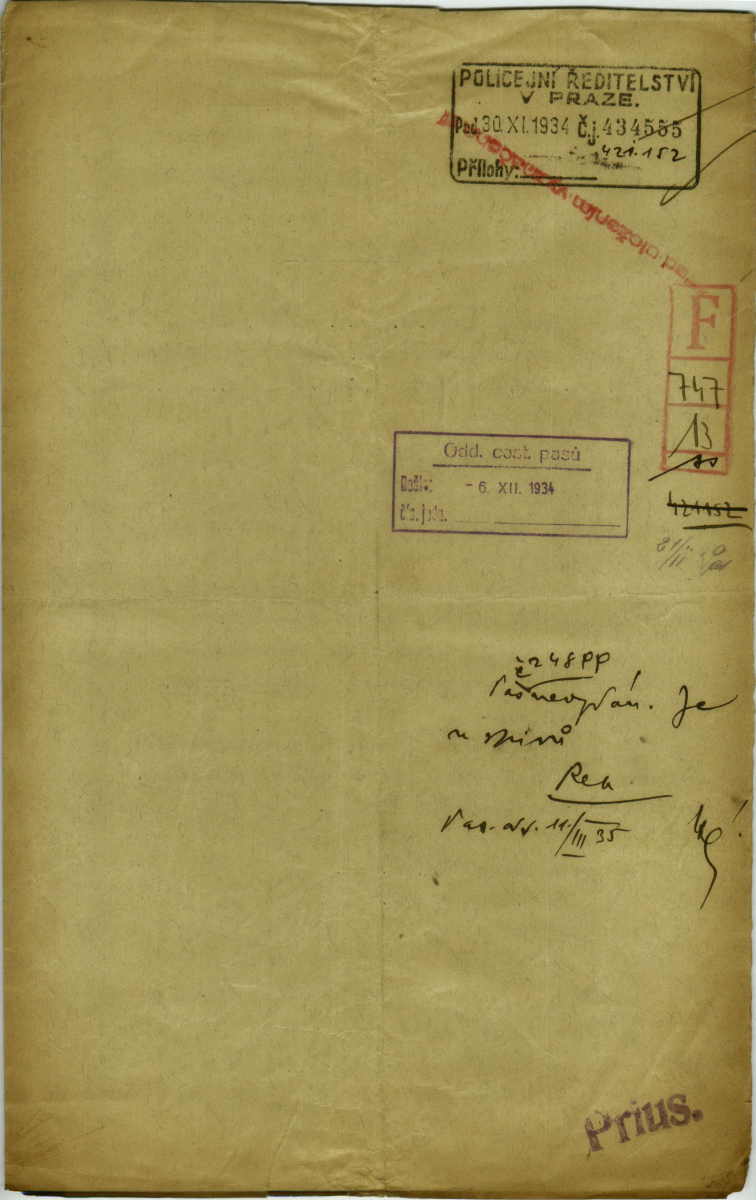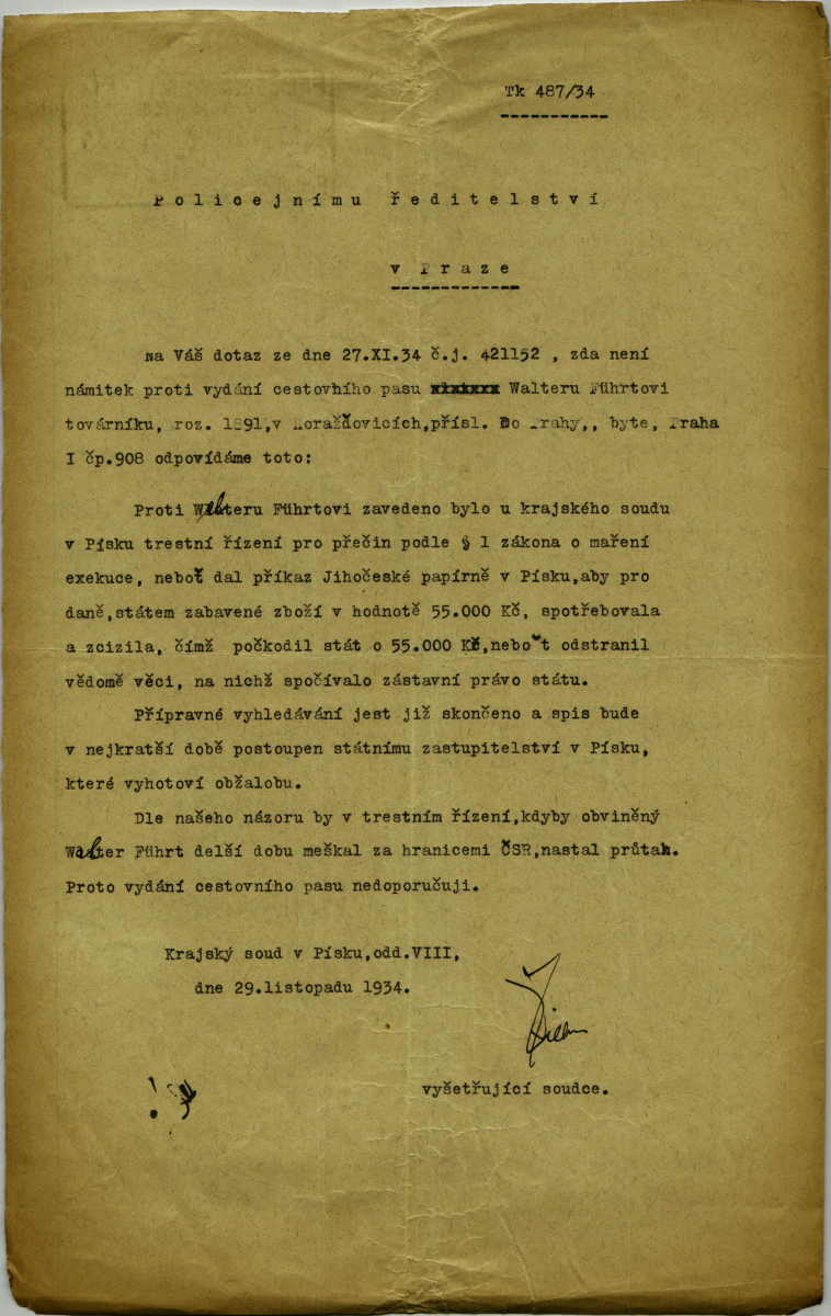 Fürth Walter: Vyjádření k žádosti o vydání cestovního pasu