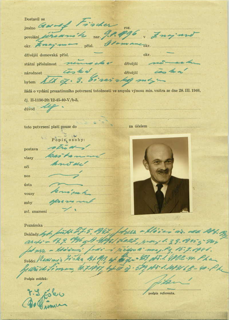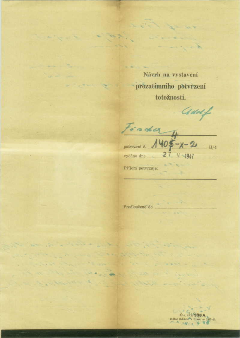Fischer Adolf: Žádost o vydání prozatímního potvrzení totožnosti