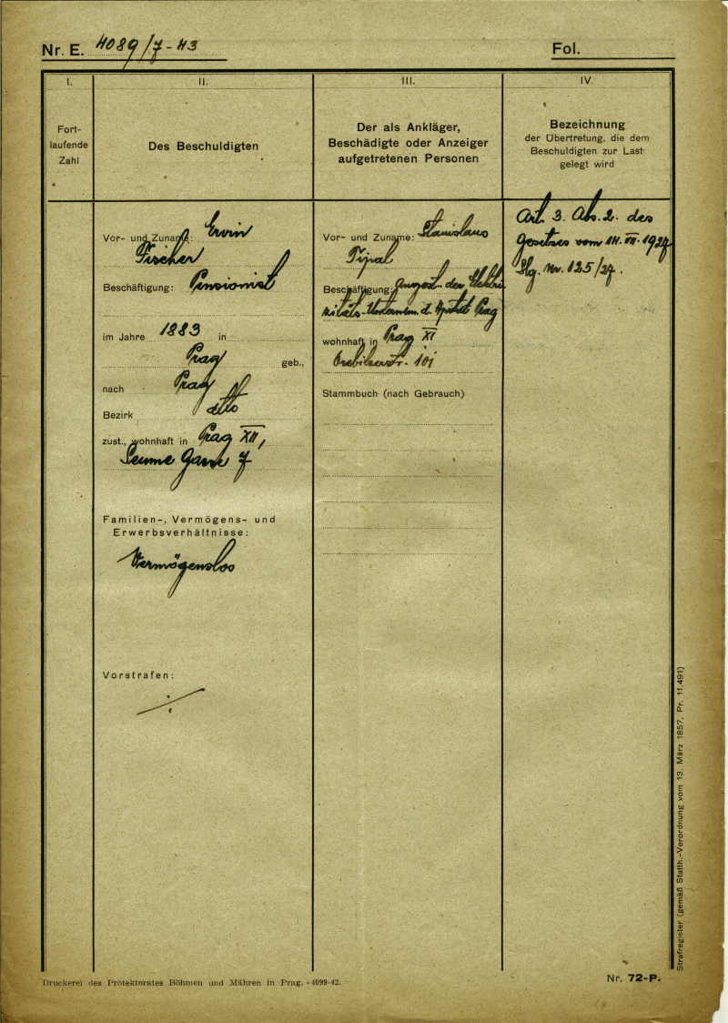 National archives Prague > Police Directorate Prague > 1941-1950 > F > Fischer Ervin