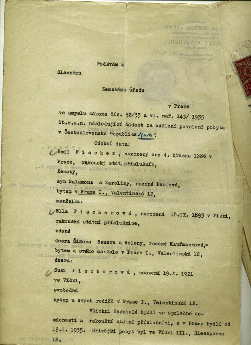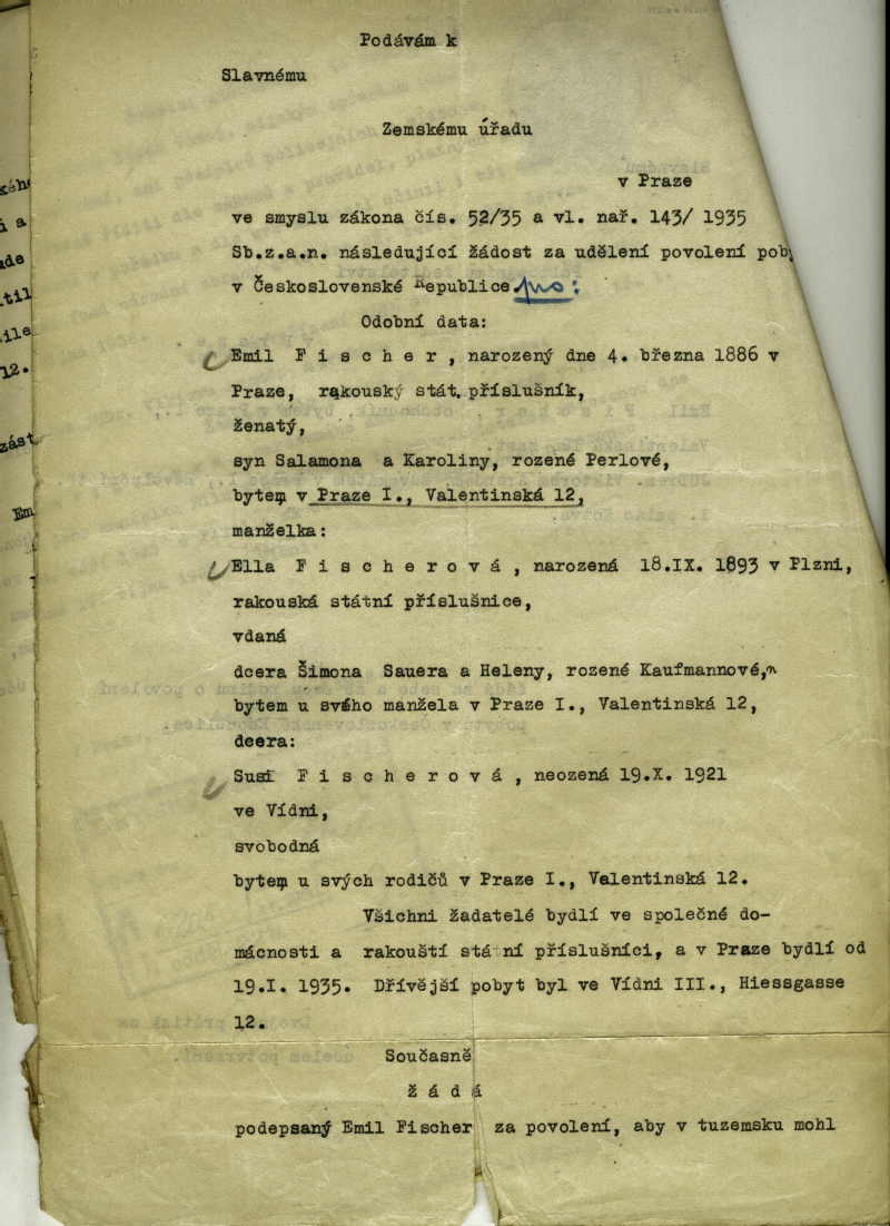 Fischer Emil: Residence permit application