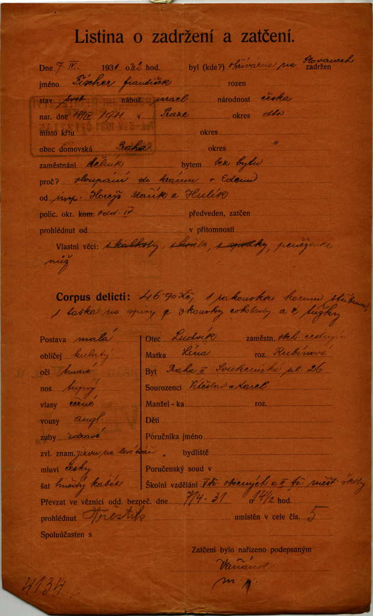 Fischer František: Arrest protocol