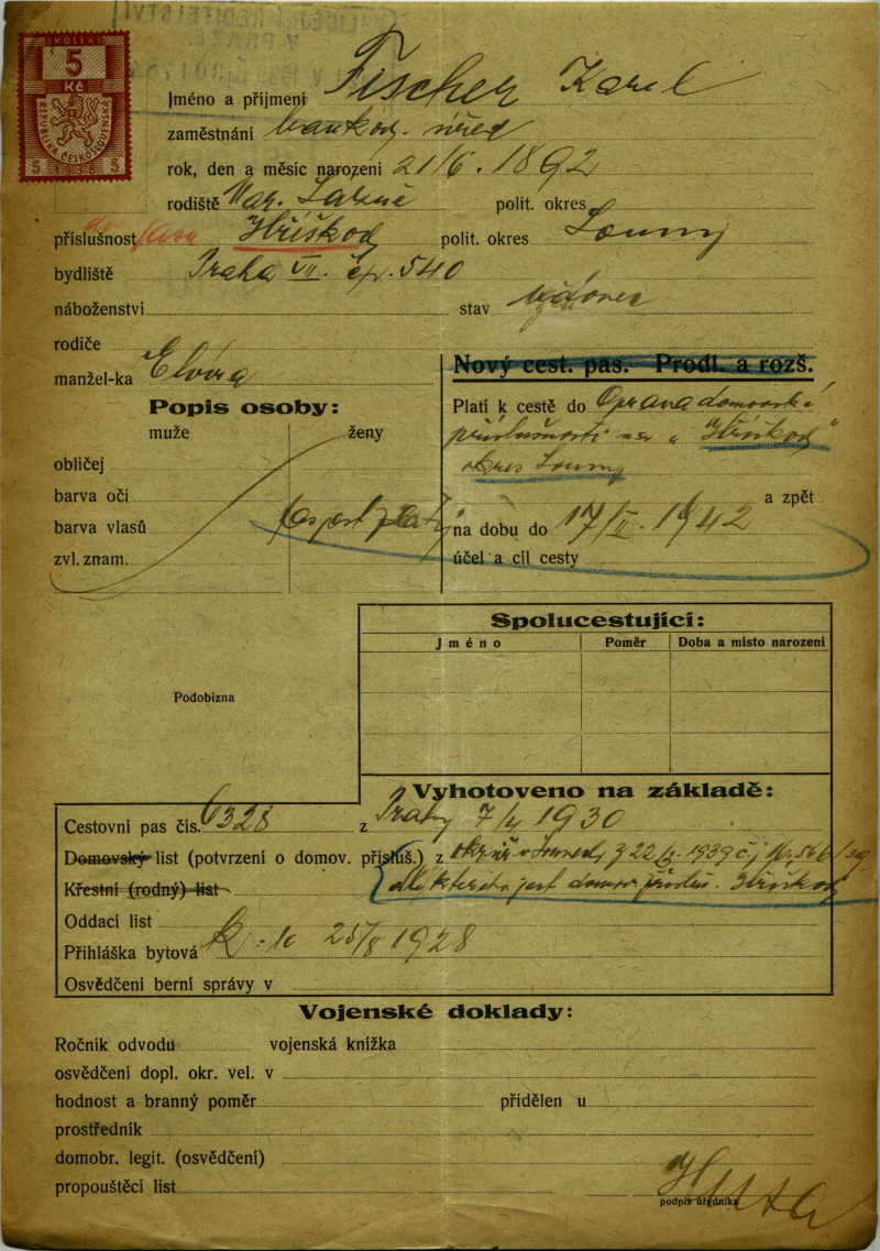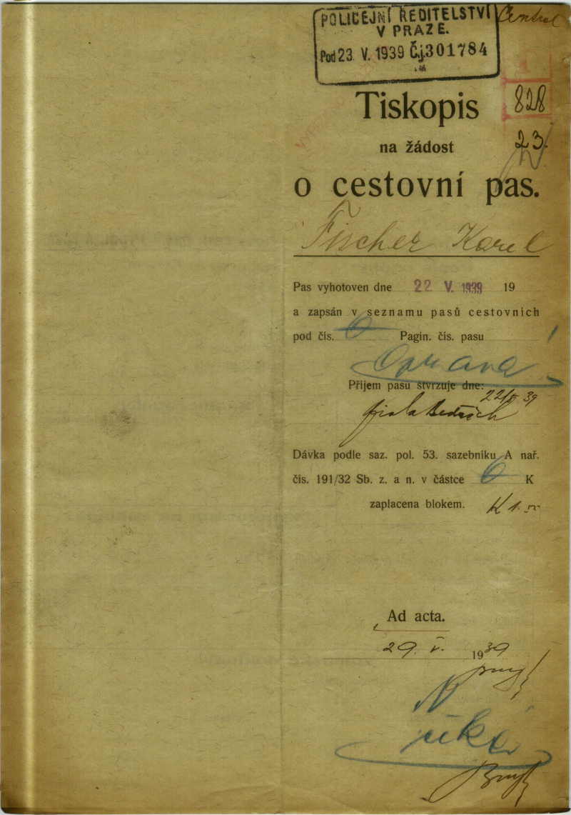 Fischer Karl: Passport application