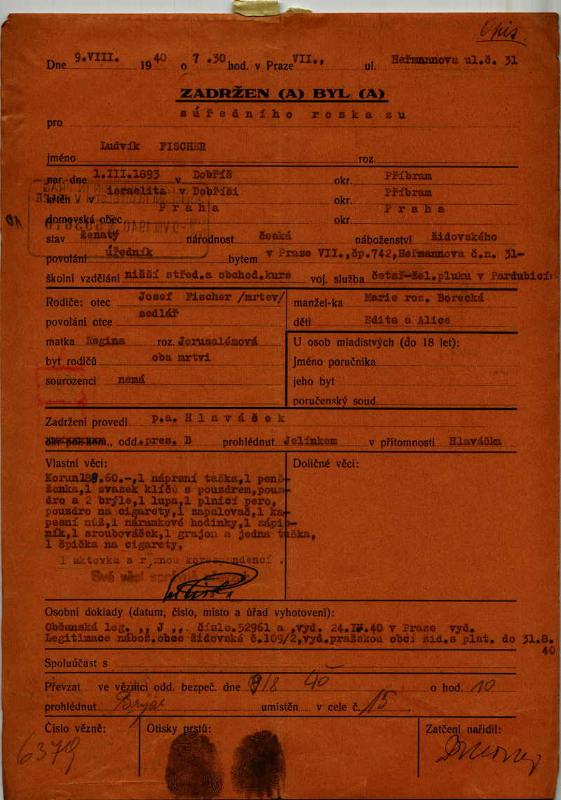 Fischer Ludwig: Arrest protocol