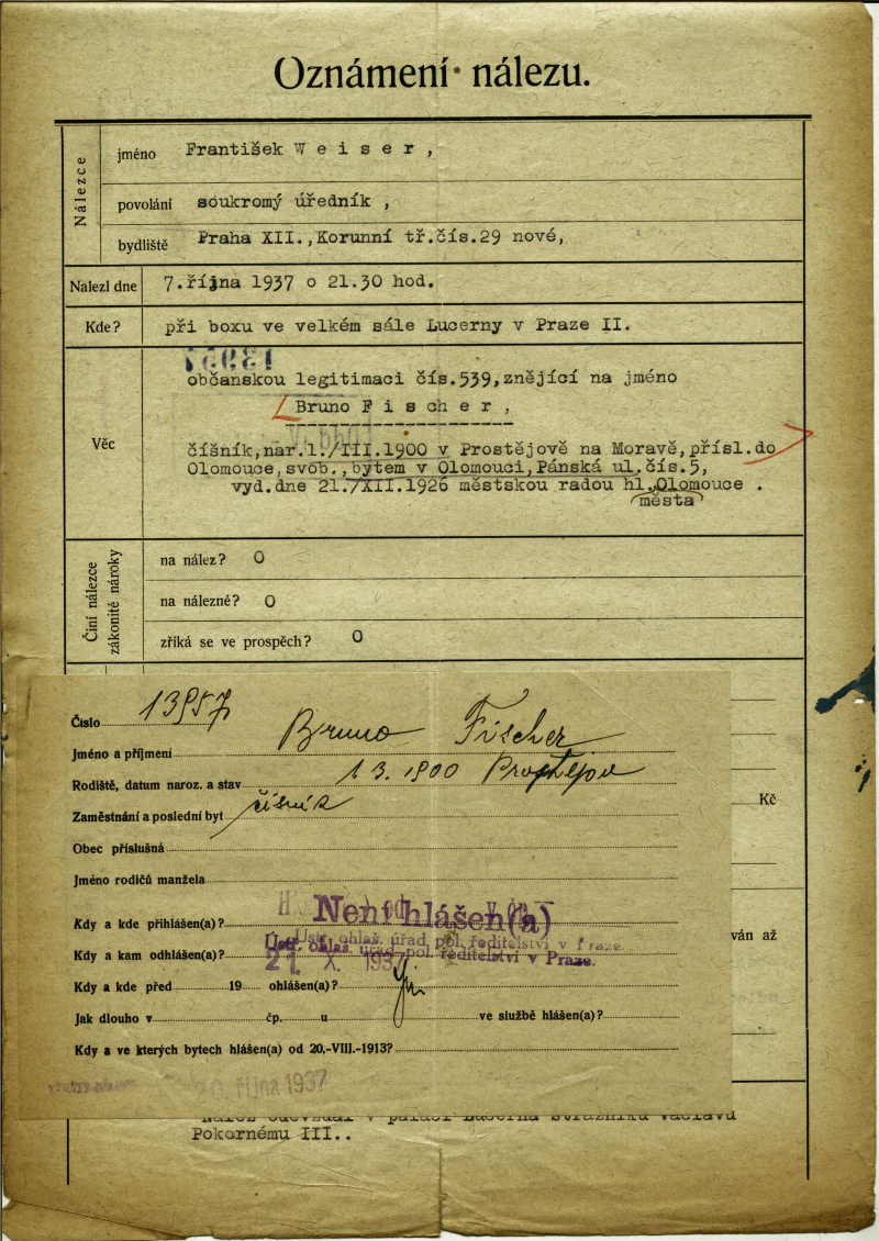 Fischer Bruno: Oznámení nálezu