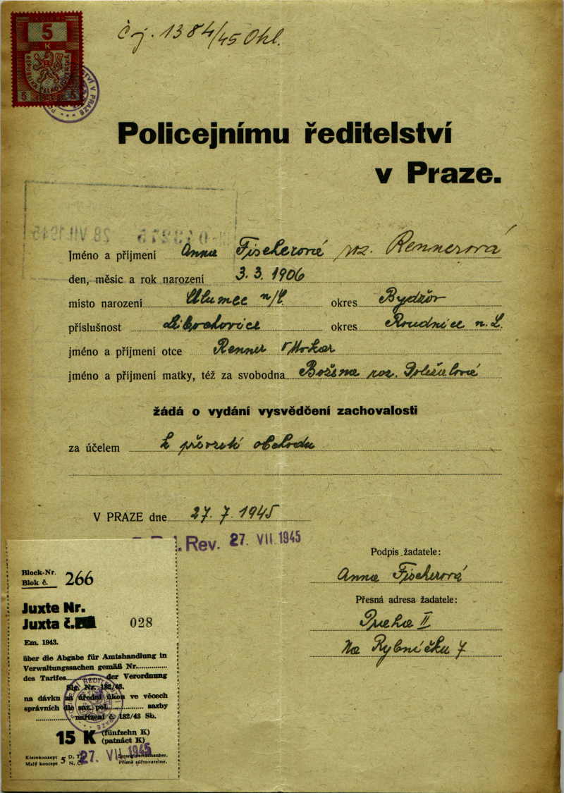 National archives Prague > Police Directorate Prague > 1941-1950 > F > Fischerová Anna