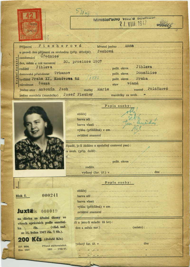 National archives Prague > Police Directorate Prague > 1941-1950 > F > Fischerová Hana