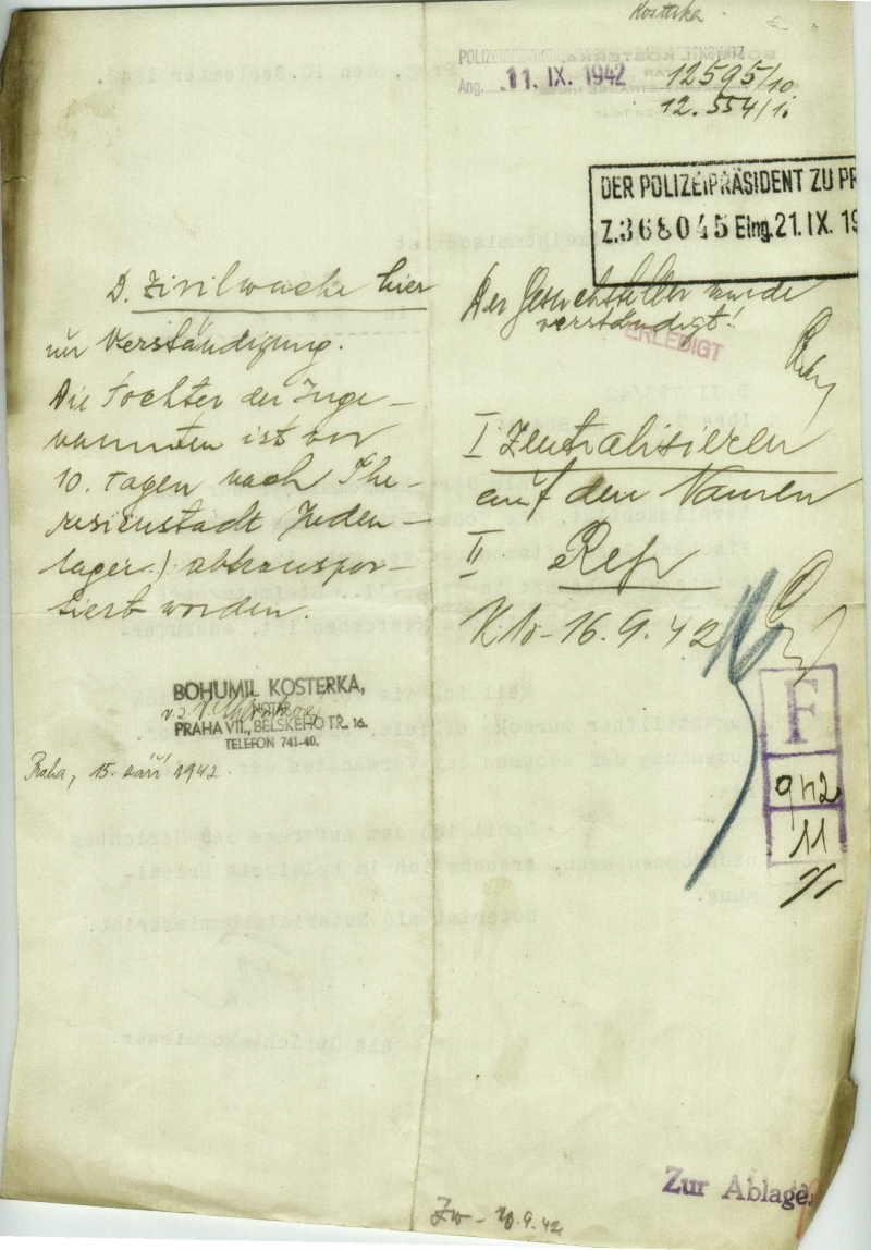 For publication purposes, contact the National Archives in Prague, where the original document is located. The document was digitized by the Terezín Initiative Institute, the Terezín Album project.