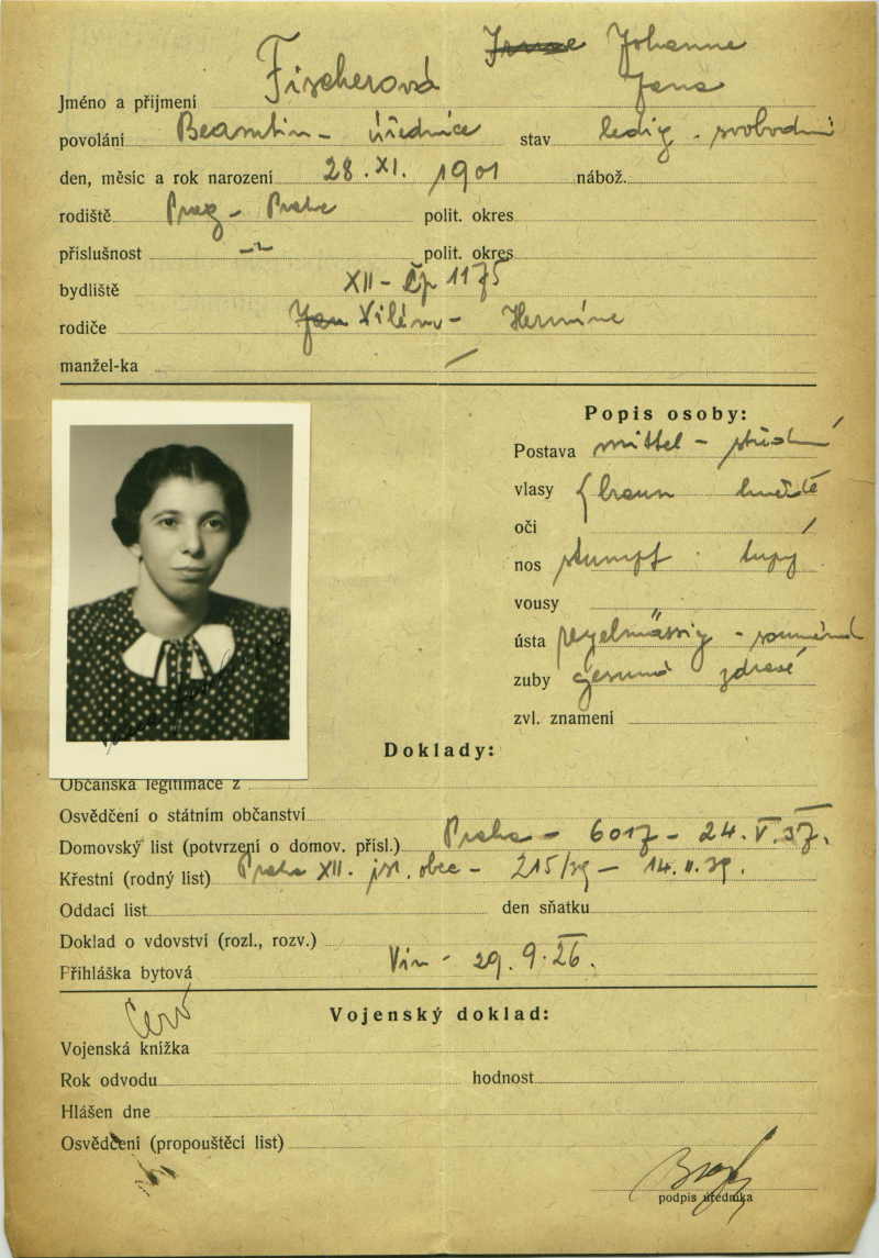 National archives Prague > Police Directorate Prague > 1941-1950 > F > Fischerová Jana