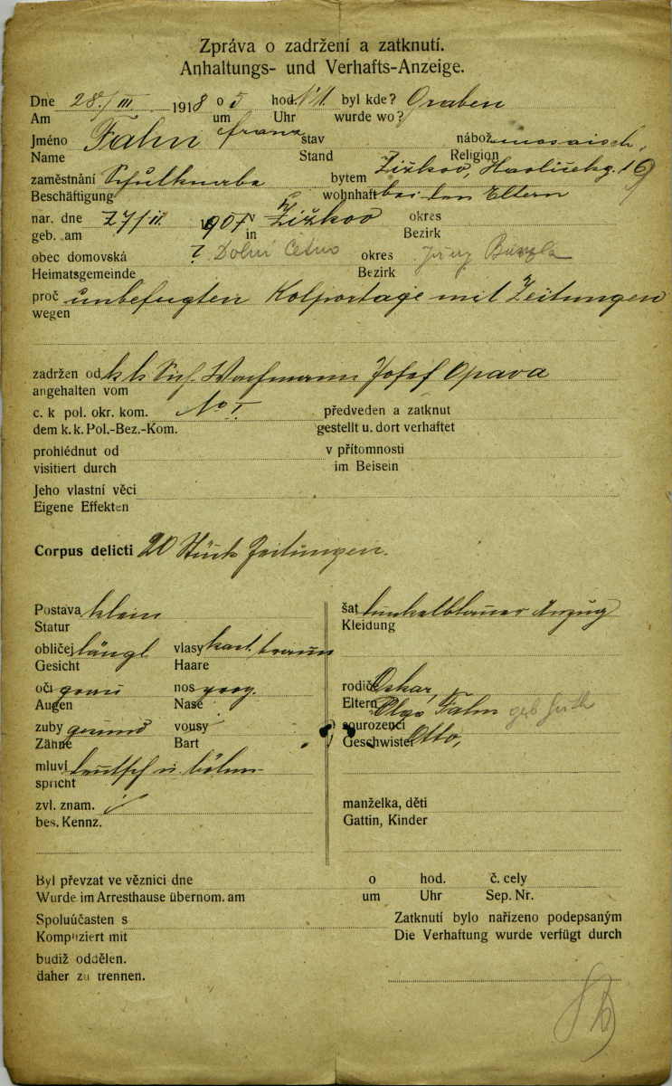 National archives Prague > Police Directorate Prague > 1941-1950 > F > Fahn František