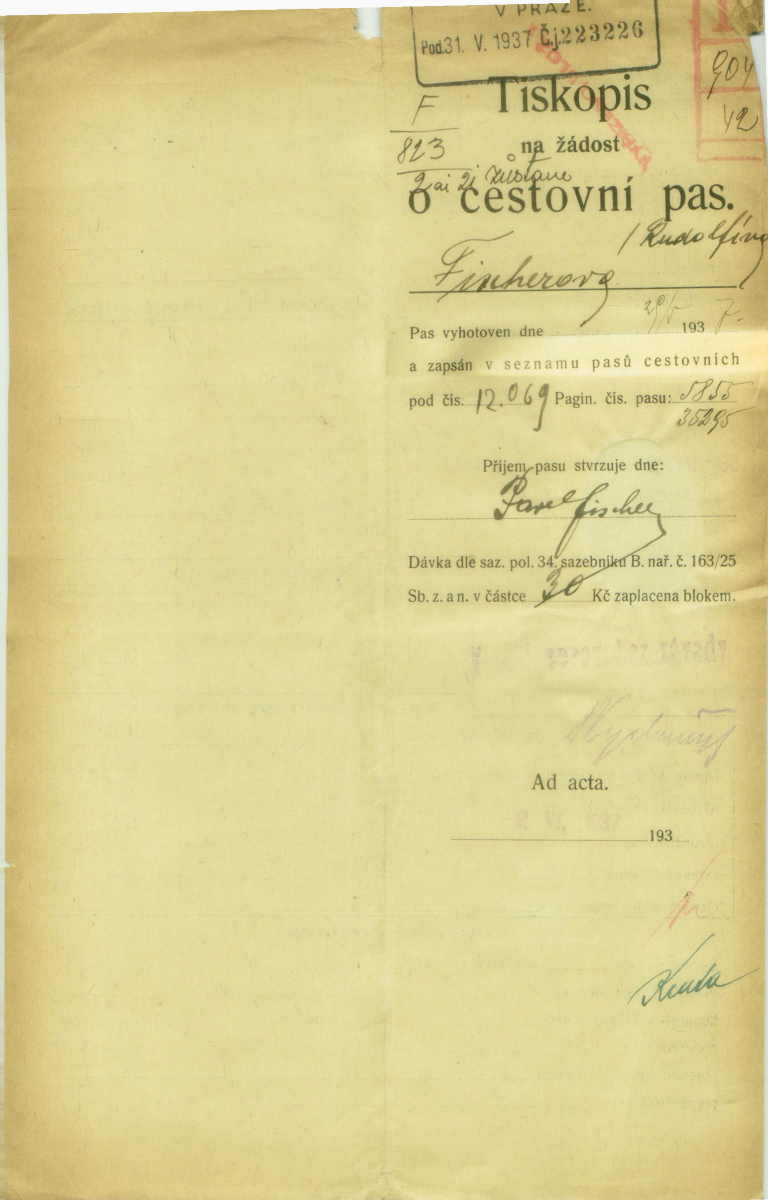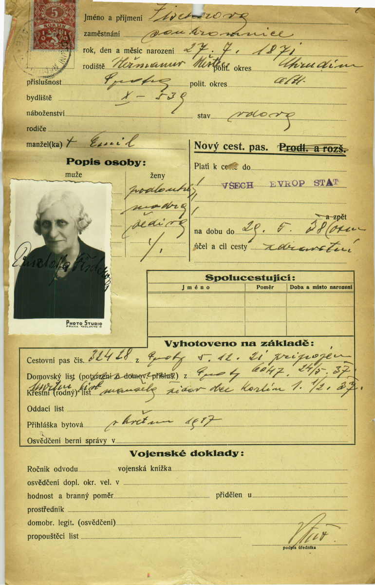 Fischerová Rudolfina: Passport application